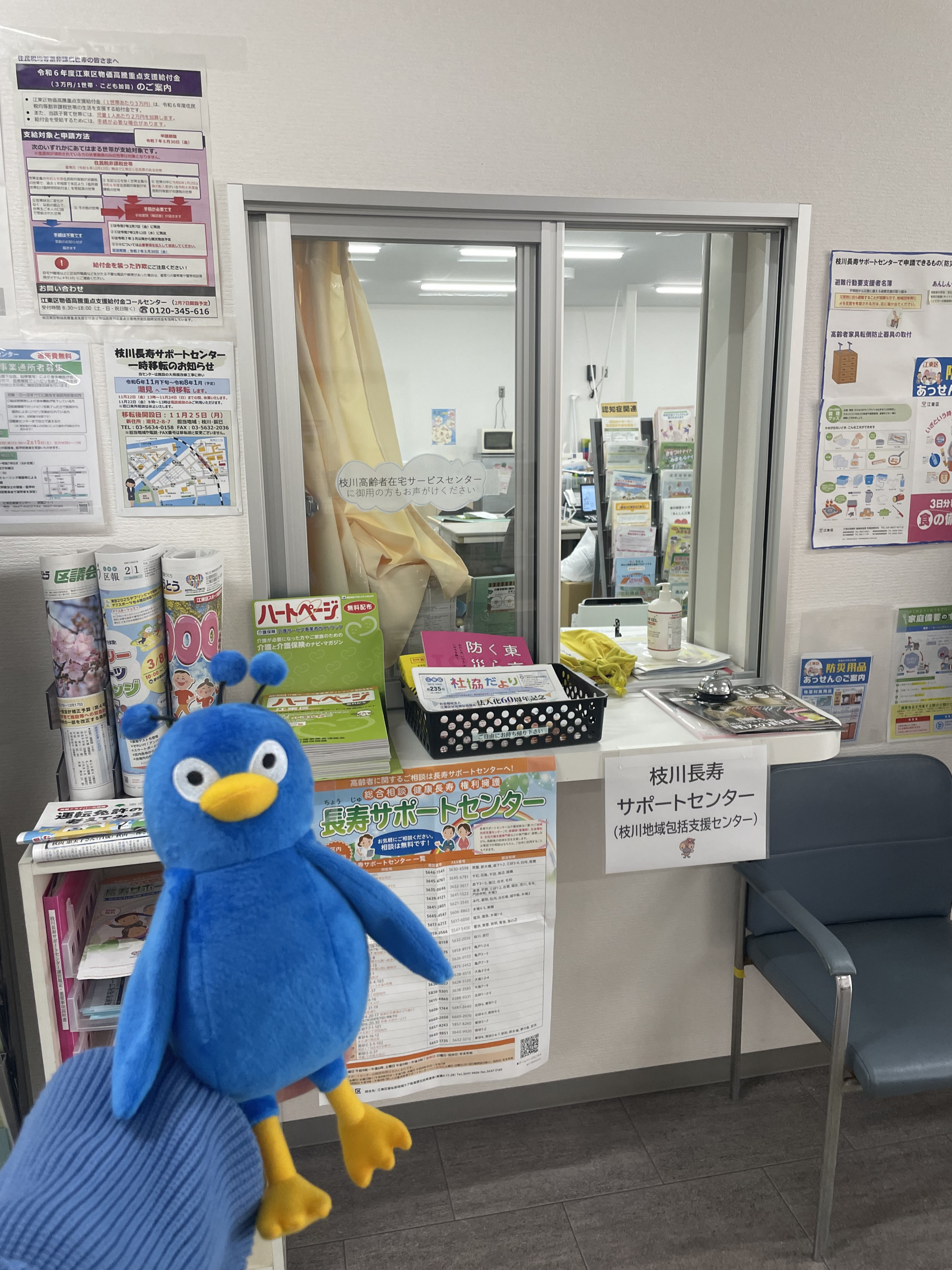 癒されると職員にも大人気なくじゃぺん1号は枝川包括の相談窓口にいます!是非会いに来てみてはいかがでしょうか!?
