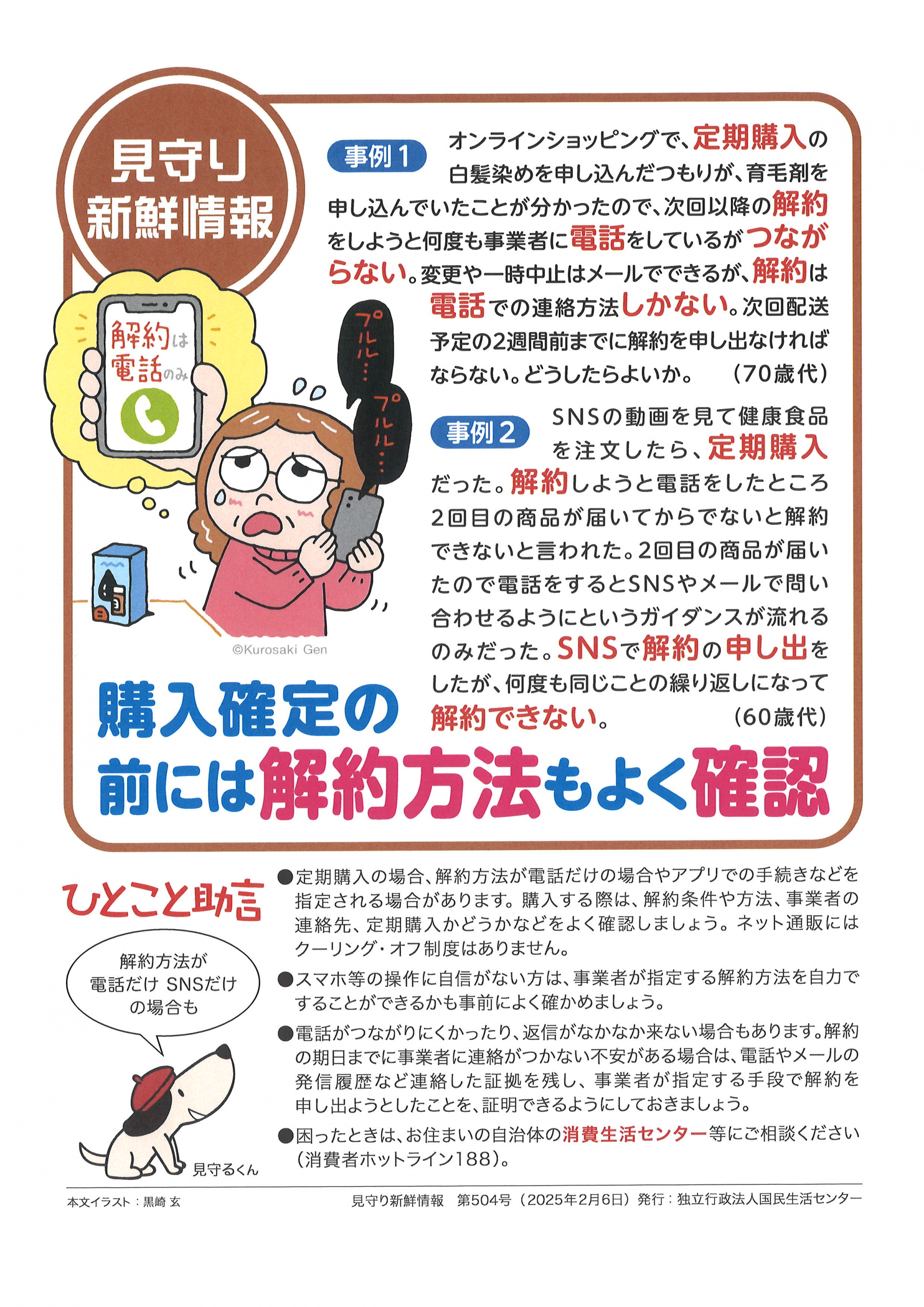 購入する際は、解約条件や方法、事業者の連絡先、定期購入かどうかなどをよく確認しましょう。