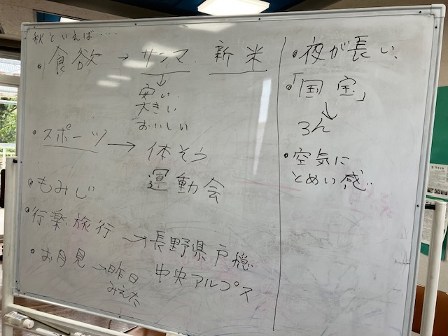 (体操前に皆さんに「秋といえば・・・?」をお聞きしました)