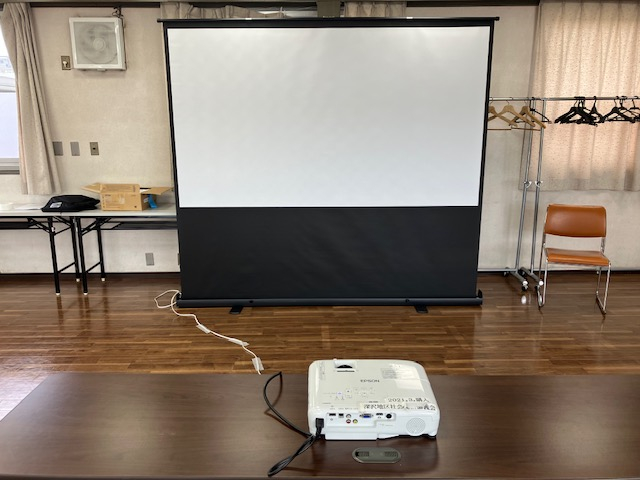 大きなスクリーンに「世田谷いきいき体操」の動画を映して、それを見ながら体操しています。