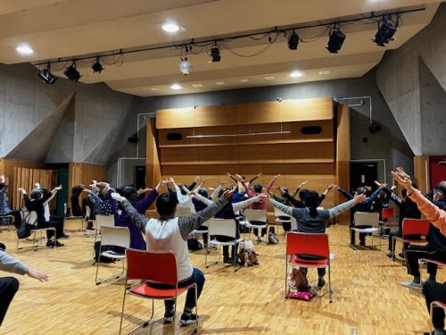 桔梗クラブでは「世田谷いきいき体操」の動画を見ながら、皆さんと一緒に体操を行っています。