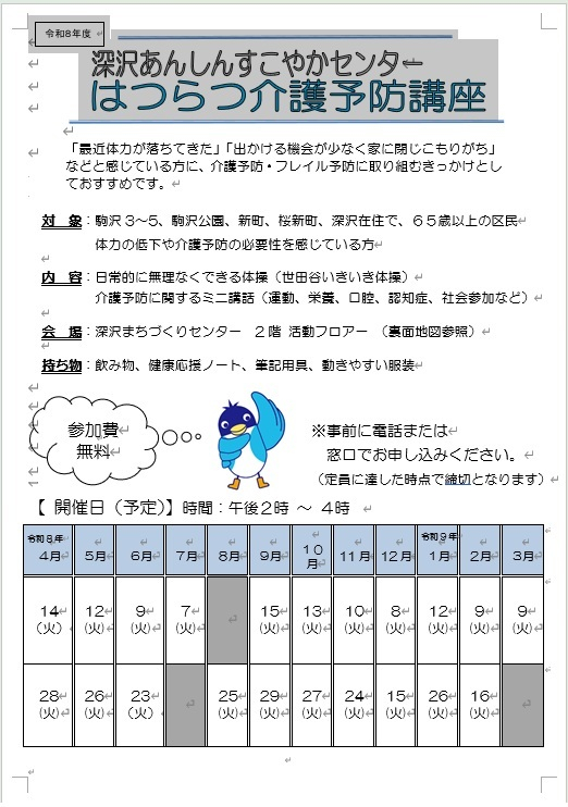 前半は、「フレイル予防」についての講話、後半は、「世田谷いきいき体操」を行いました。