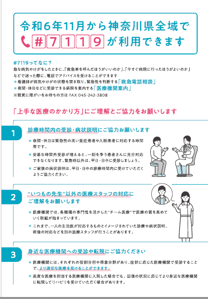救急車?病院?と迷ったら…まずはかながわ救急相談センターへお電話をしてみてください。
