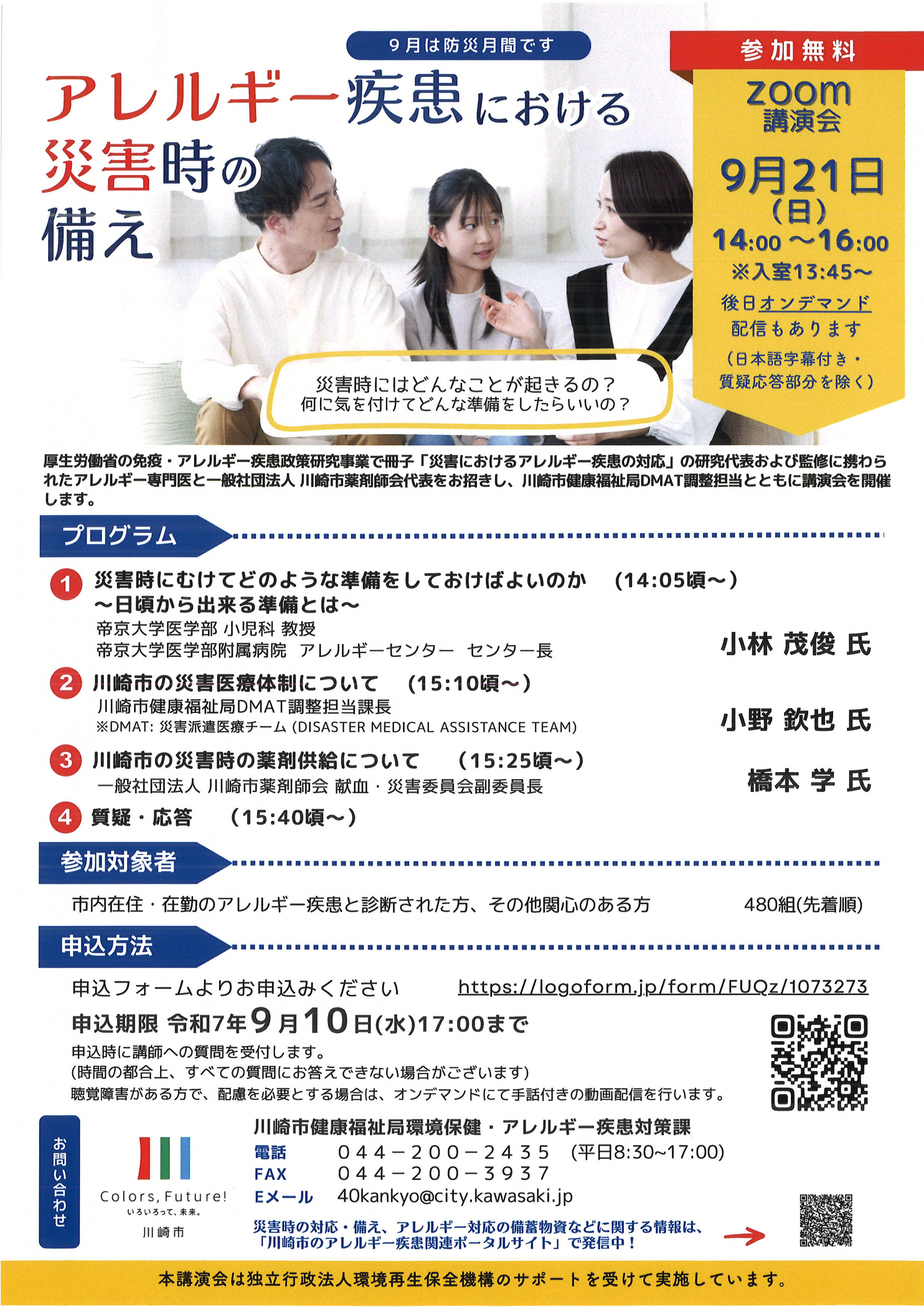 厚生労働省の免疫・アレルギー疾患政策研究事業で冊子「災害におけるアレルギー疾患の対応」の研究代表および