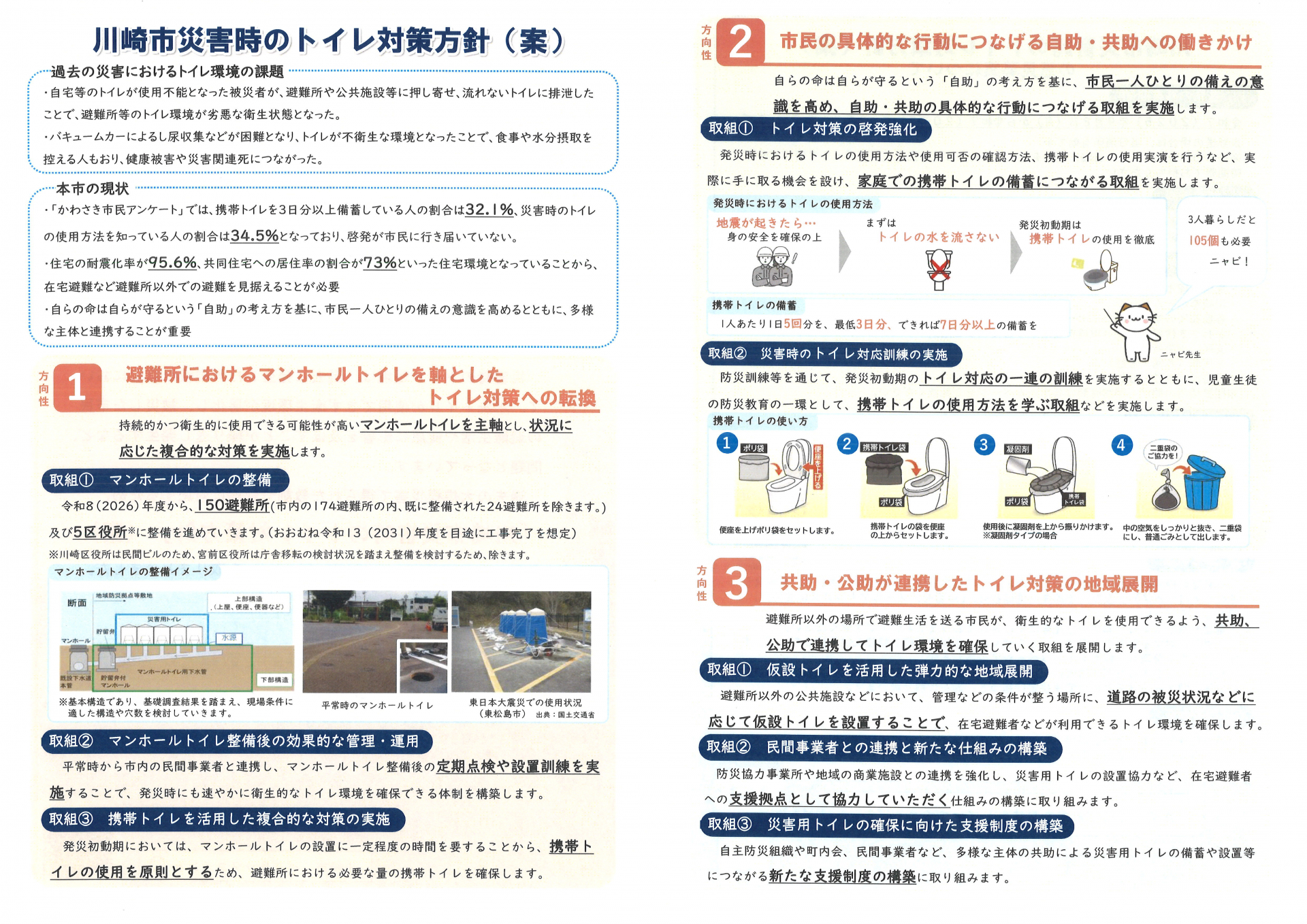 川崎市は災害時のトイレ対策について、対策方針を策定中です。