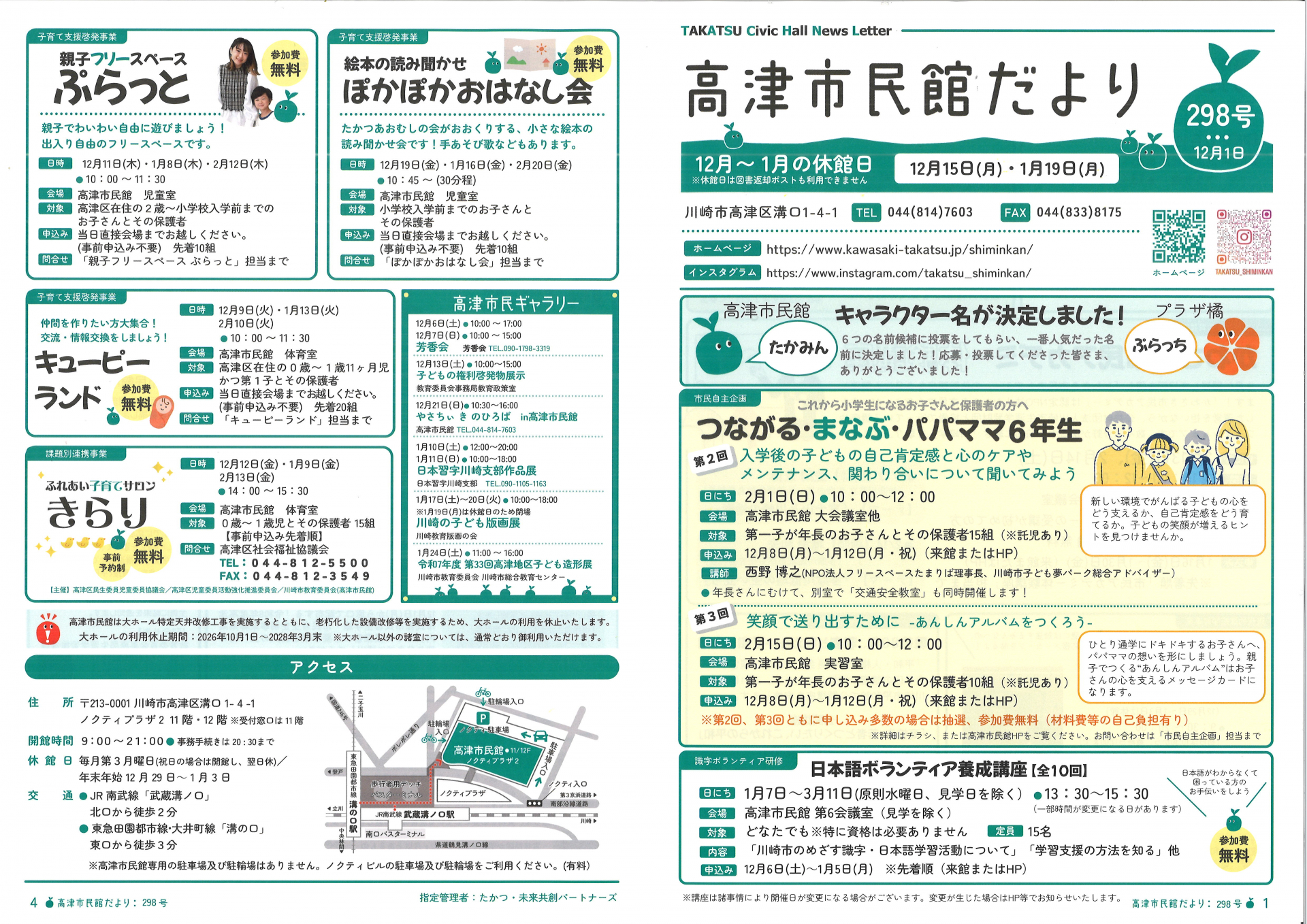 2025.12.23 お知らせ 【久末居宅】高津市民館だより12月1日号 Tweet シェアする 高津市民館だよりです。 今回も老若男女全世代向けの催し物が盛りだくさんです!【久末居宅 S】 前の記事 2025.12.23 お知らせ 【久末居宅】プラザ橘だより12月1日号。 次の記事 2025.12.23 お知らせ 【久末居宅】リチウムイオン電池等は小物金属で収集します! 一覧へ戻る