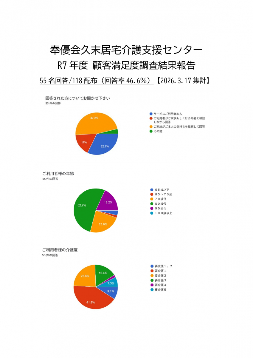 【久末居宅】久末居宅介護支援センターR7年度CS調査結果報告