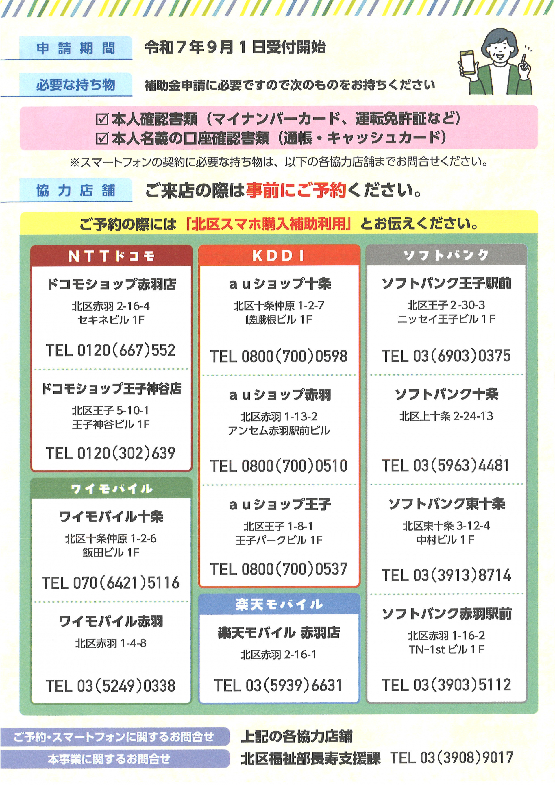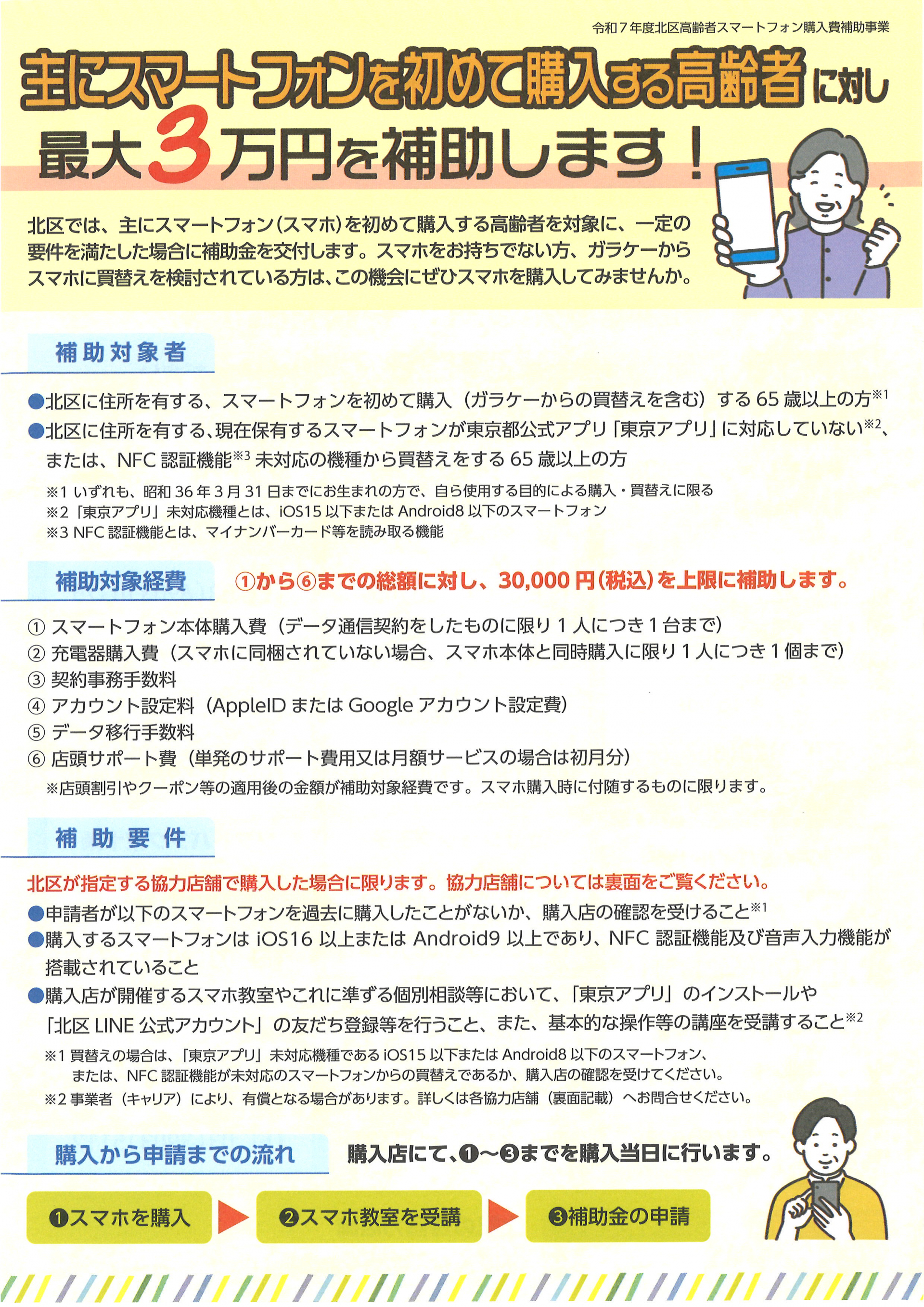 【十条台包括】北区高齢者向けスマホ購入補助金事業のご案内