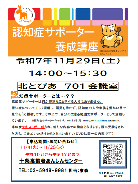 【十条台包括】認知症サポーター養成講座開催のお知らせ
