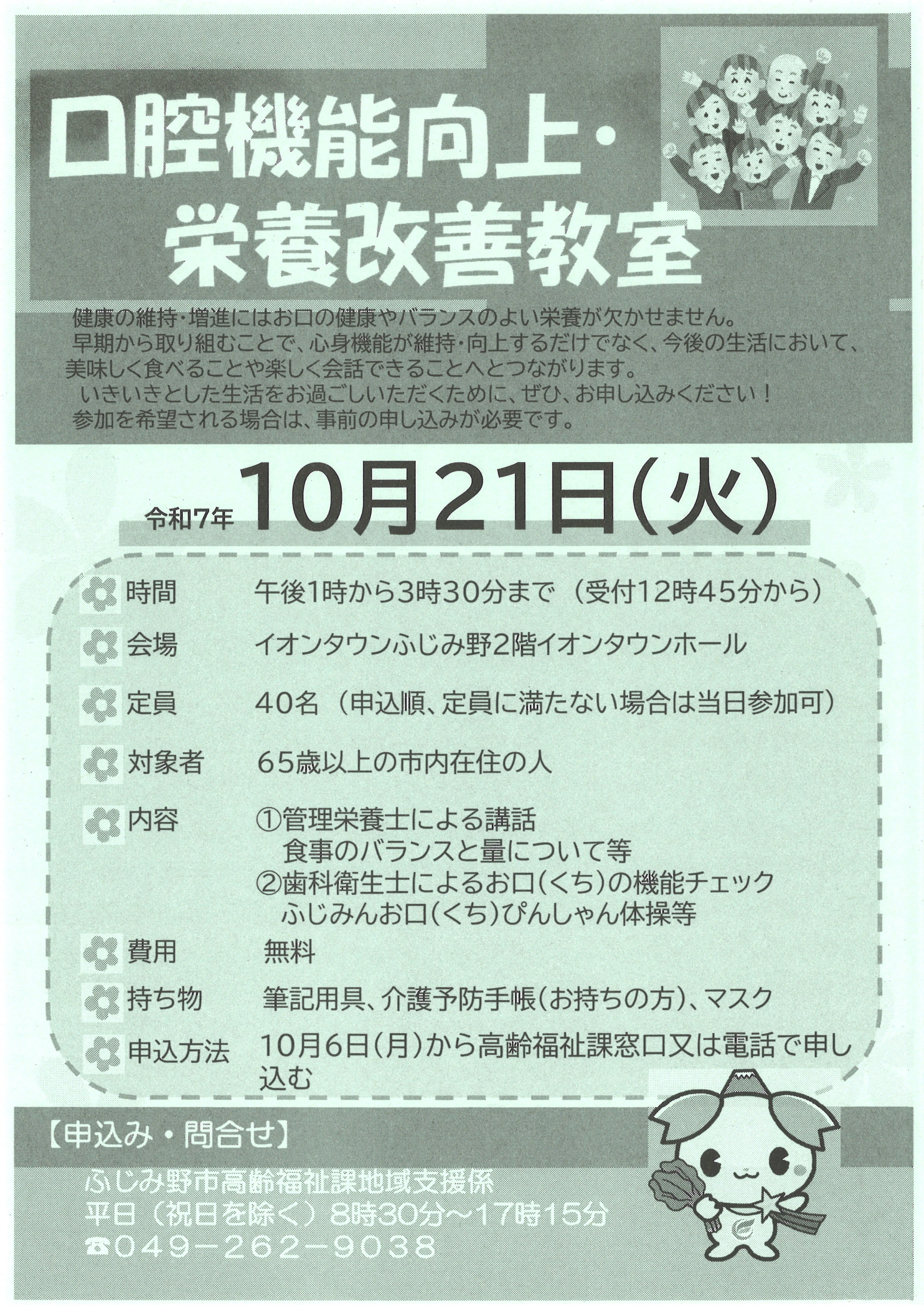 ふじみ野市在住の65歳以上の方を対象に開催されます。