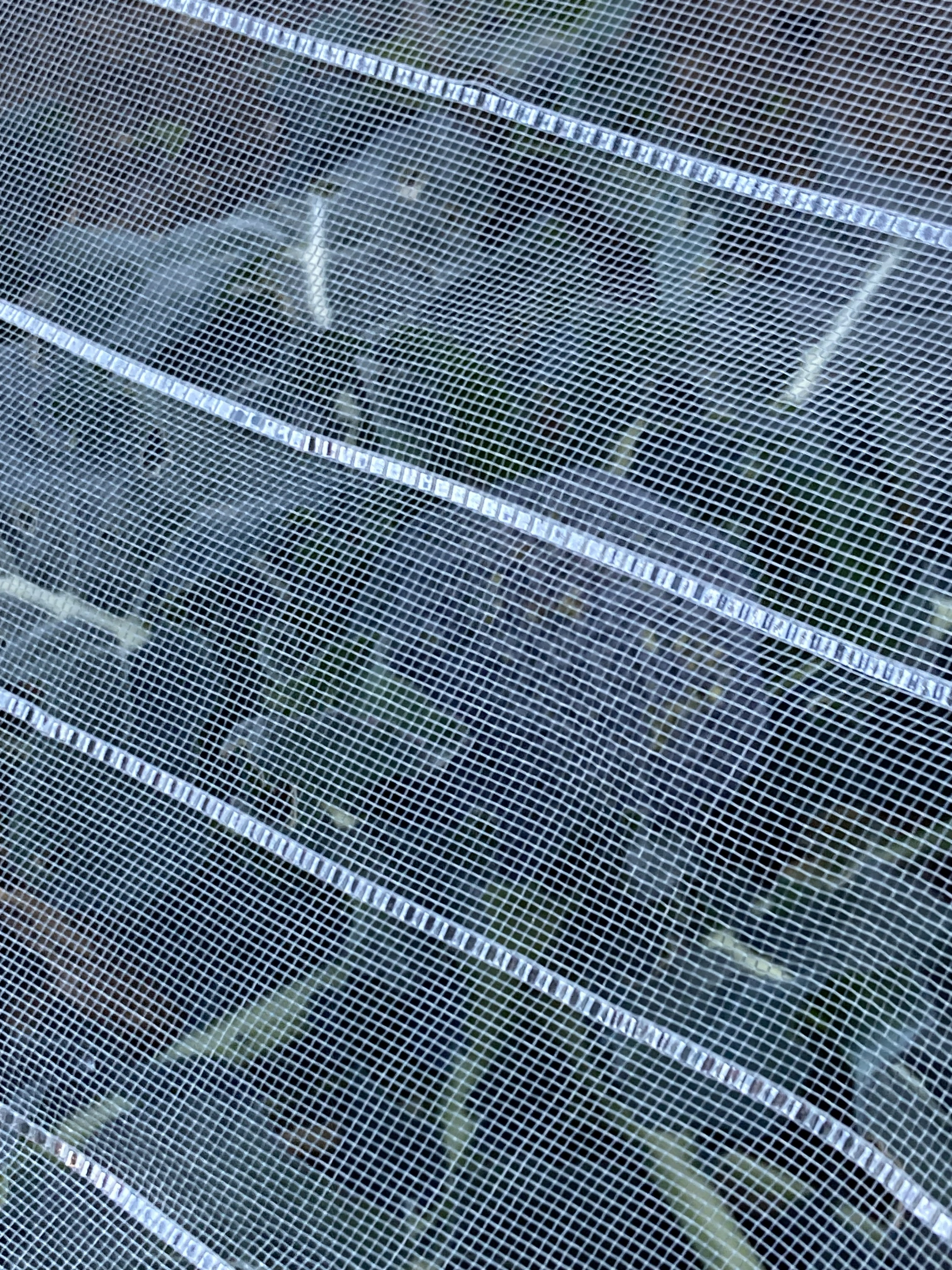 寒さ除けの防虫ネットの中で、ブロッコリーがすくすくと育っていました。