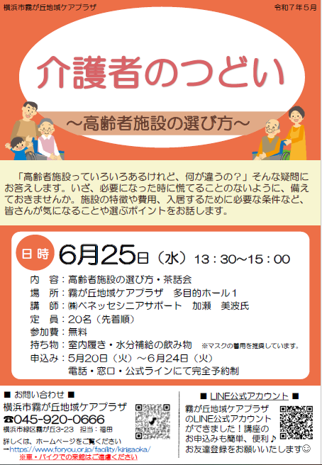 【霧が丘包括】6月25日「介護者のつどい」ご案内