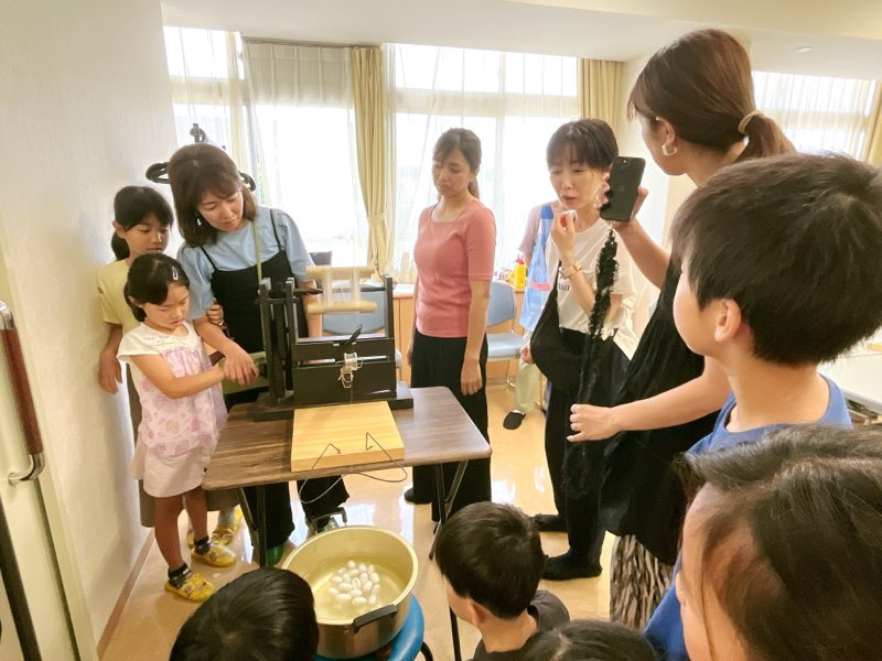子どもたちにとても喜んでもらい、引率のお父さん、お母さんにもカイコに興味を持っていただけて嬉しく思いました。