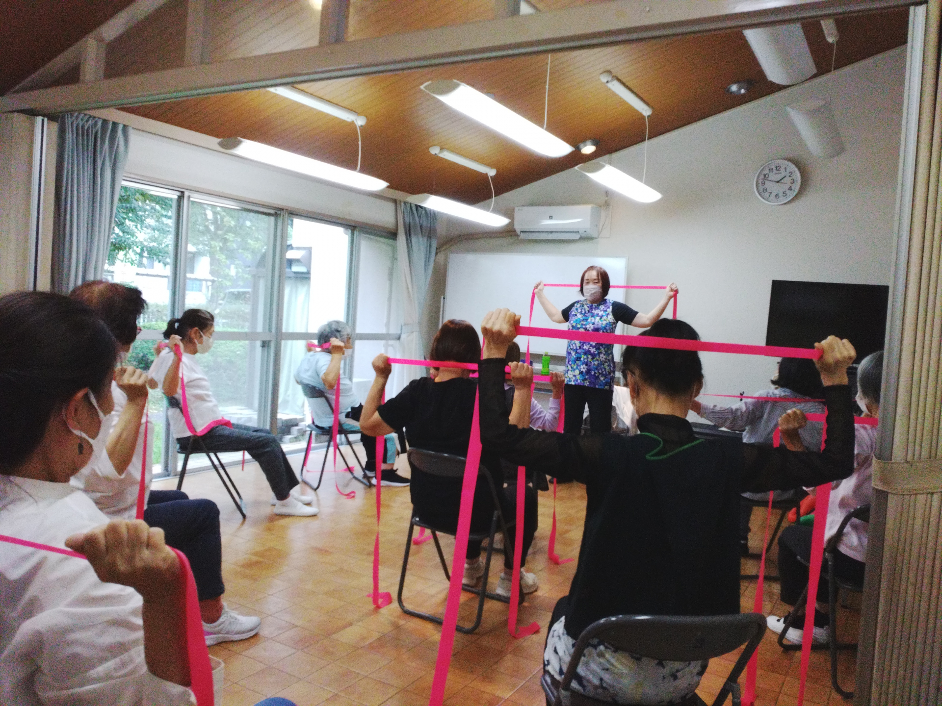 今日はベルとベルターをお持ちいただいた体操が中心。