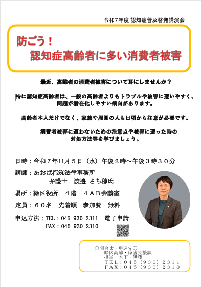 11月5日(水) 午後2時~午後3時30分 緑区役所4階 4AB にて開催されます。