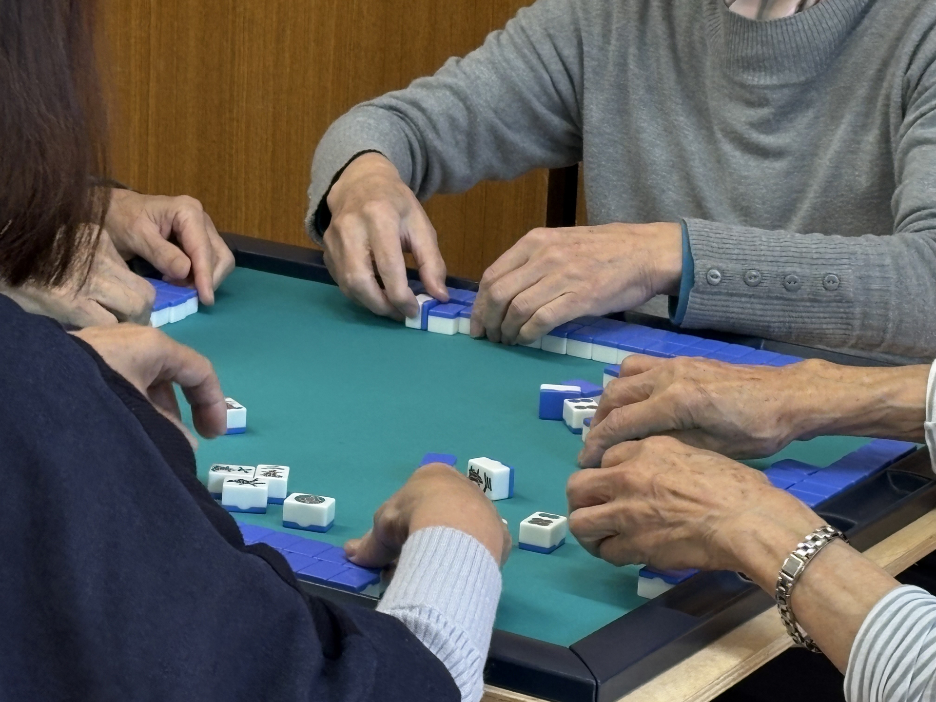 室内ではマージャンを楽しむ姿もあり、「ロン!」「ポン!」という掛け声が飛び交い、「わ〜残念!」「これ取っておけばよかったなあ」などのやりとりとともに、笑顔があふれていました。見ているだけでもわくわくしてしまうほど、皆さん本当に楽しそう!