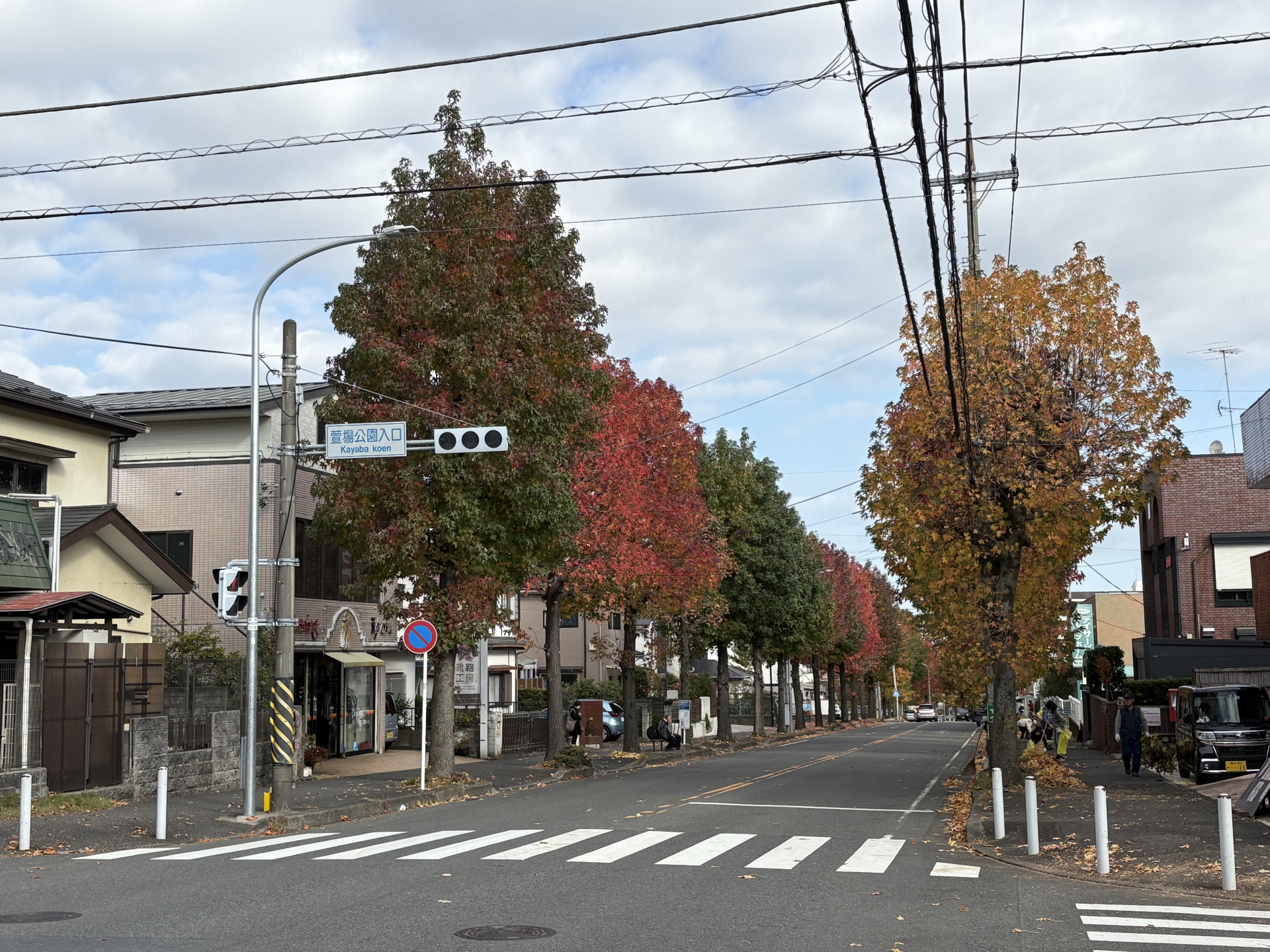 もうすっかり秋ですね。霧が丘の沿道の木々も色濃く染まり、きれいな紅葉をみることができます。