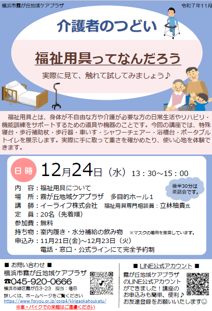 【霧が丘包括】介護者のつどい~福祉用具ってなんだろう~のご案内