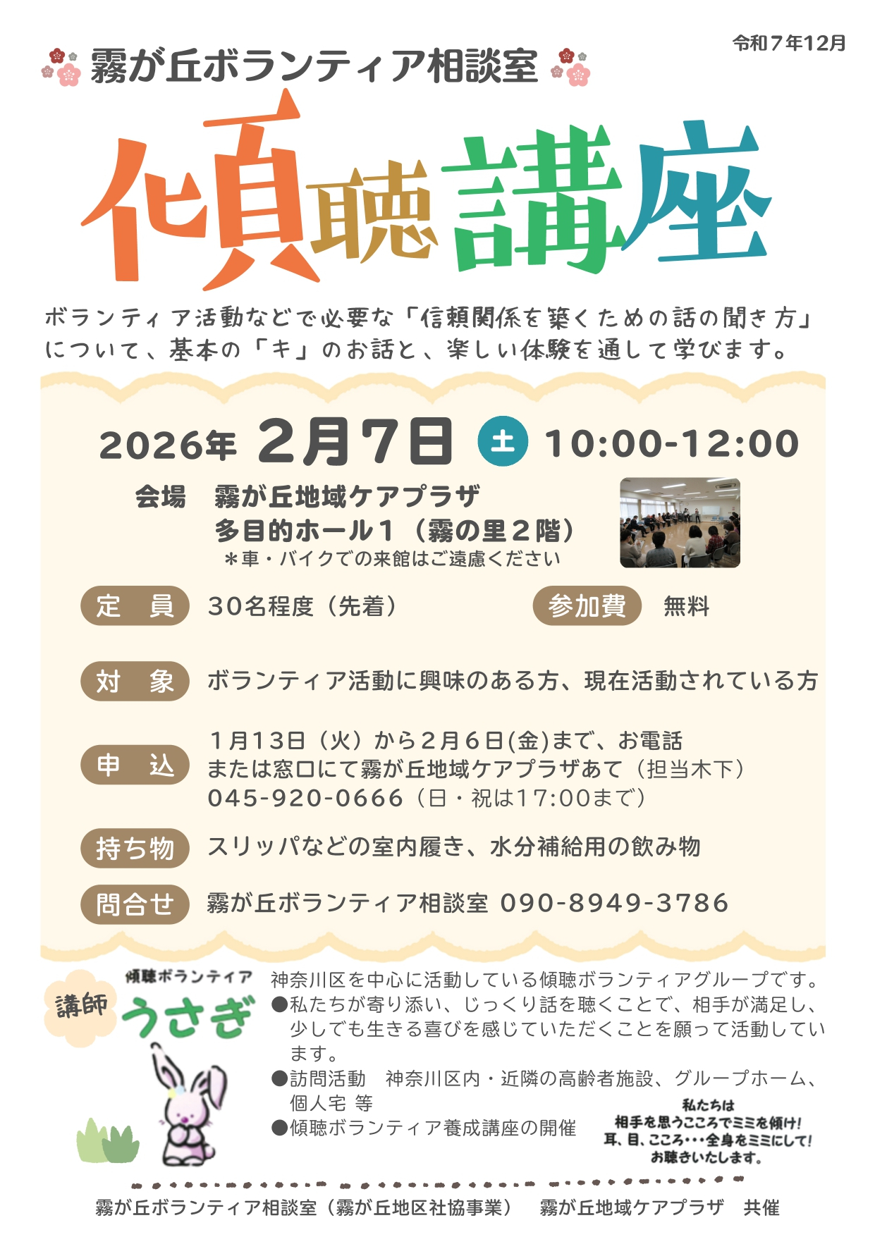 【霧が丘包括】霧が丘ボランティア相談室と共催で『傾聴講座』を開催します!