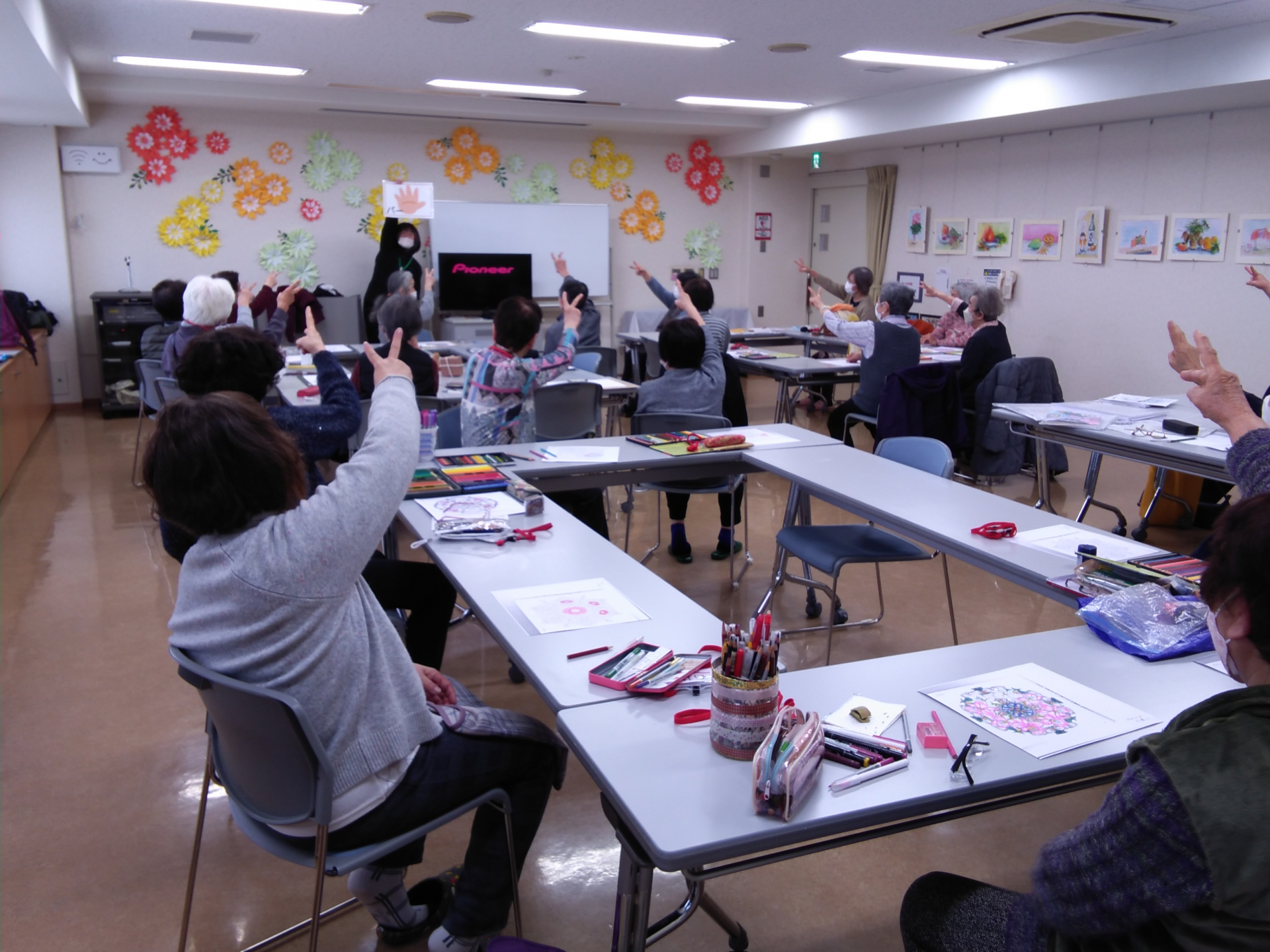まちともカフェでは、制作の合間に必ず脳トレや体操の時間を設けています。