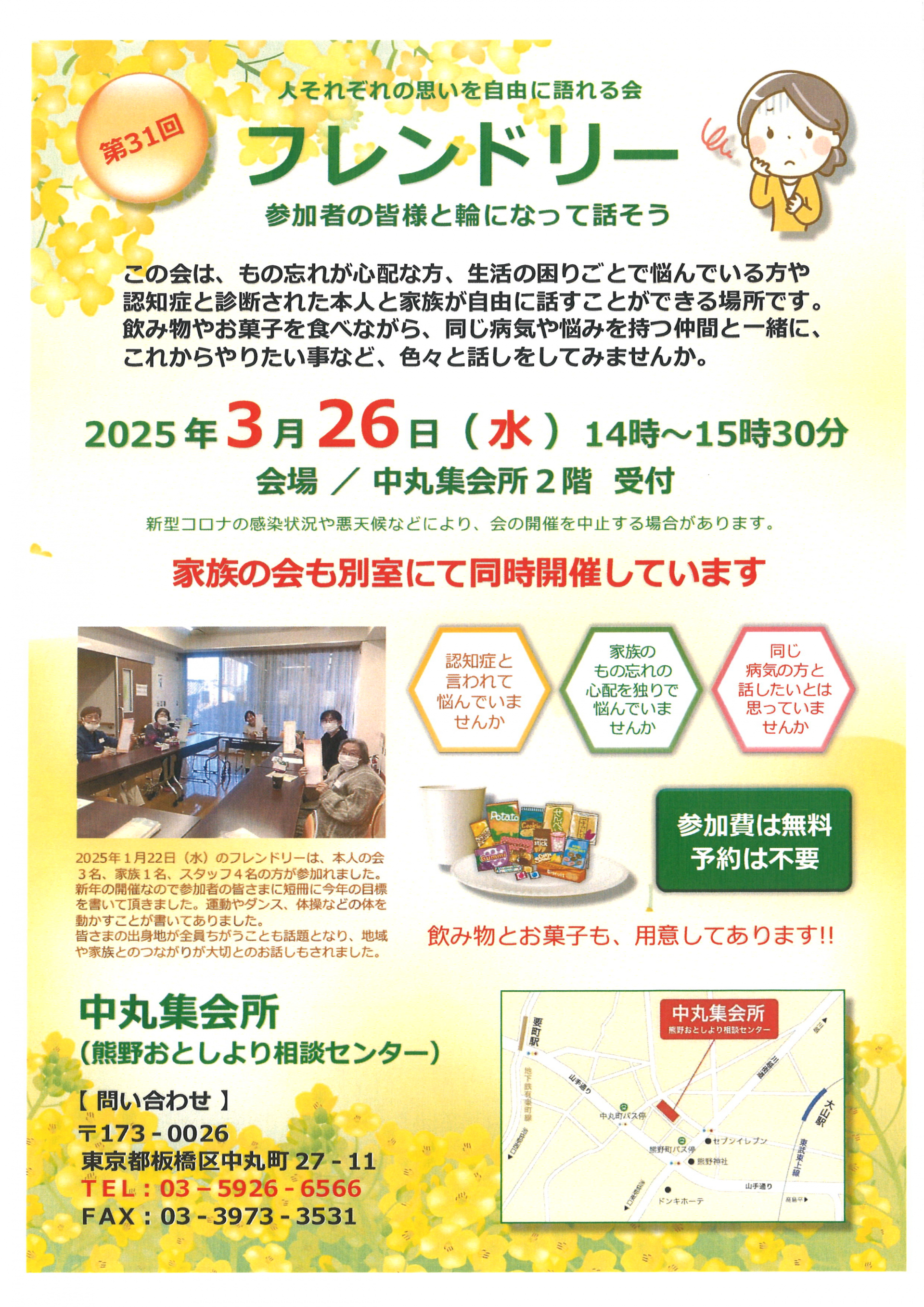 認知症の方を介護されているご家族の方が自由に話すことが出来る場所です。