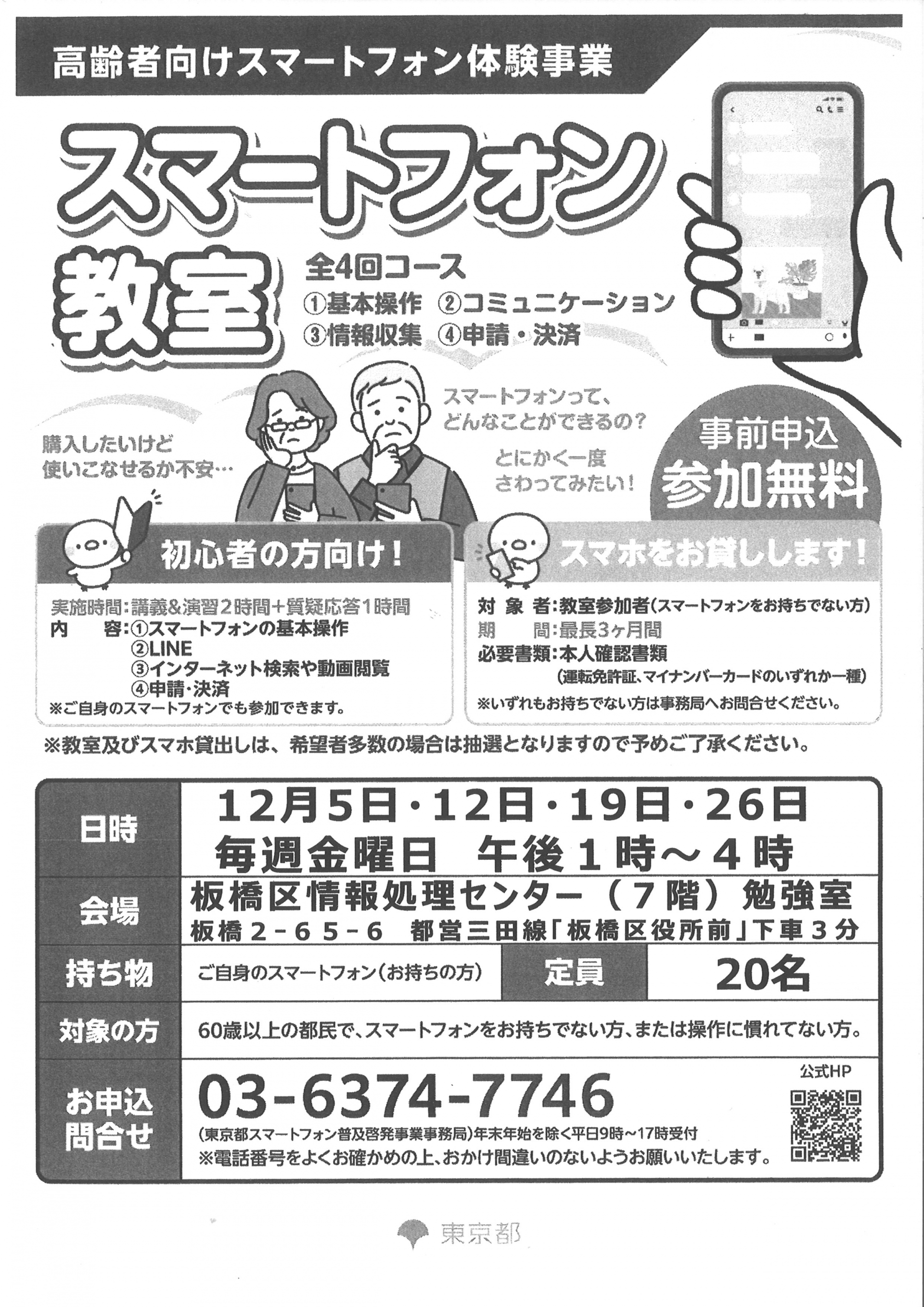 対象:60歳以上の都民でスマホをお持ちでない方、または操作に慣れていない方
