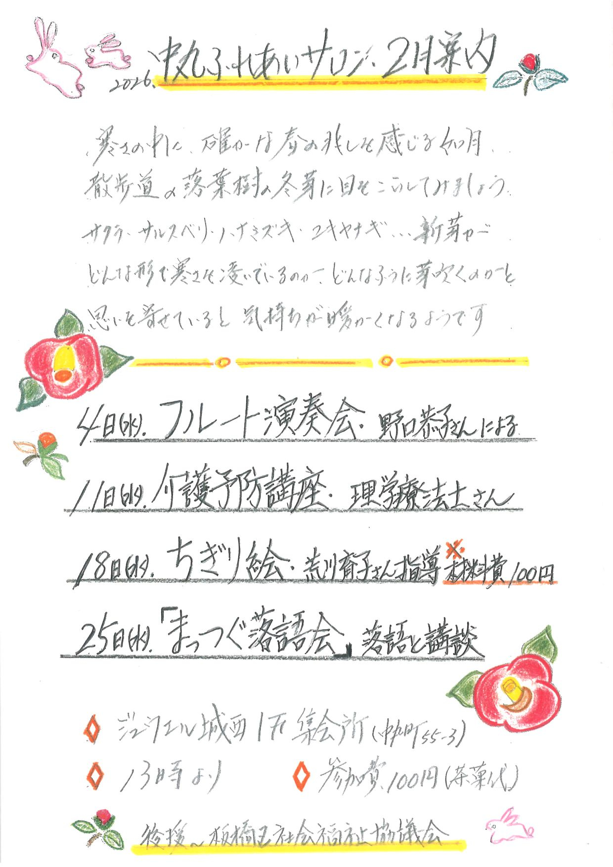 2月の中丸ふれあいサロンの予定をお知らせします。