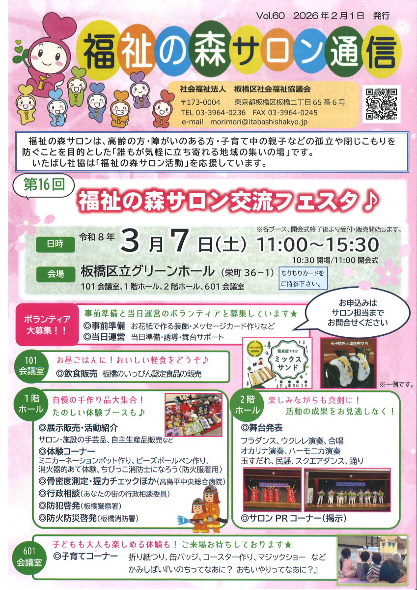 3月7日(土)板橋区立グリーンホールで行われた「第16回福祉の森サロンフェスタ」に参加しました。