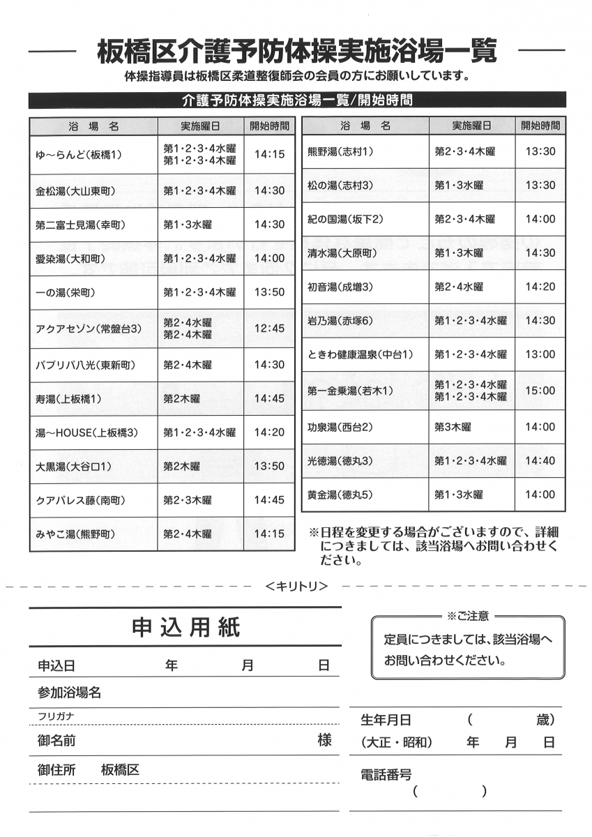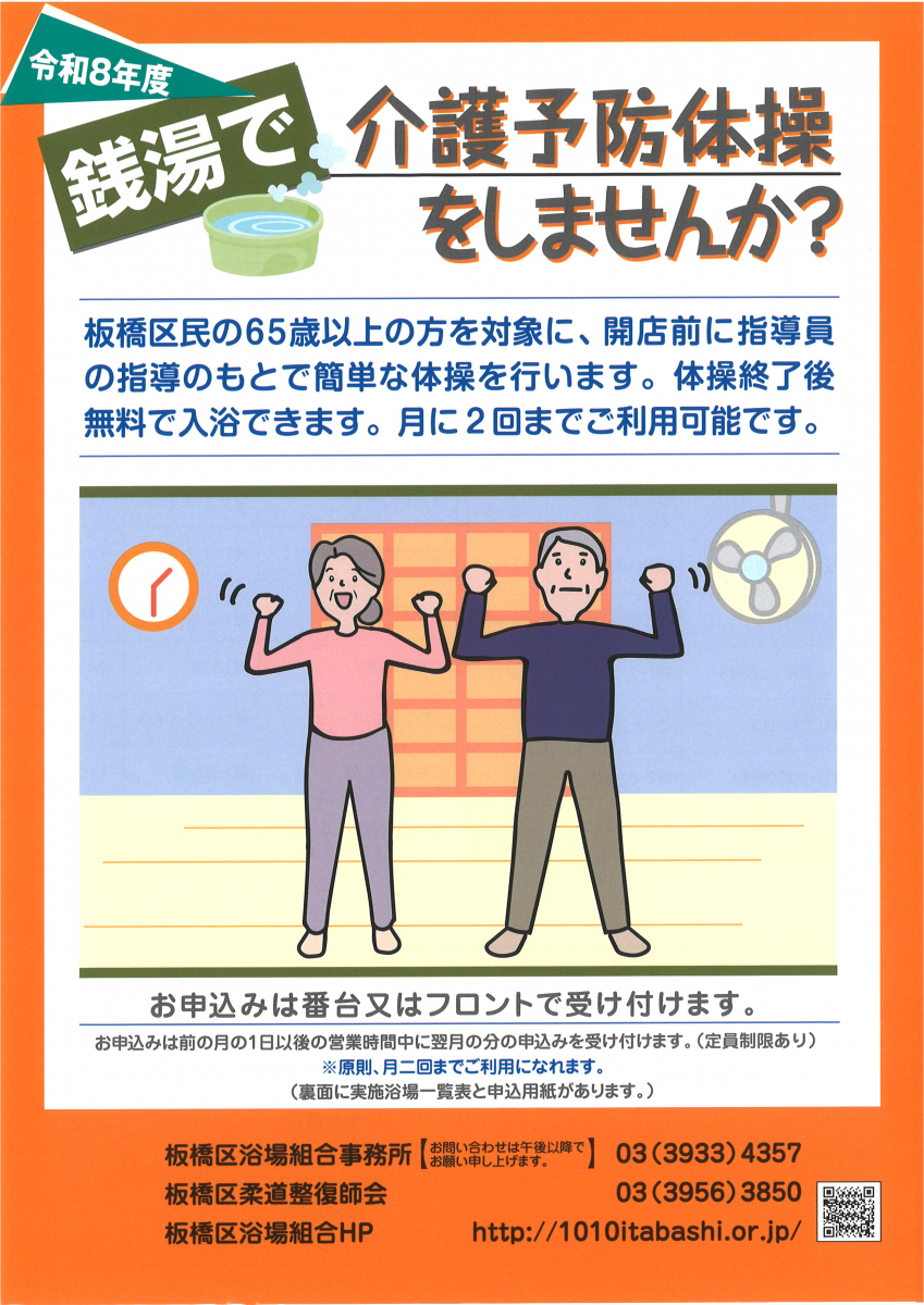 【熊野】銭湯で介護予防体操をしませんか?(板橋区)