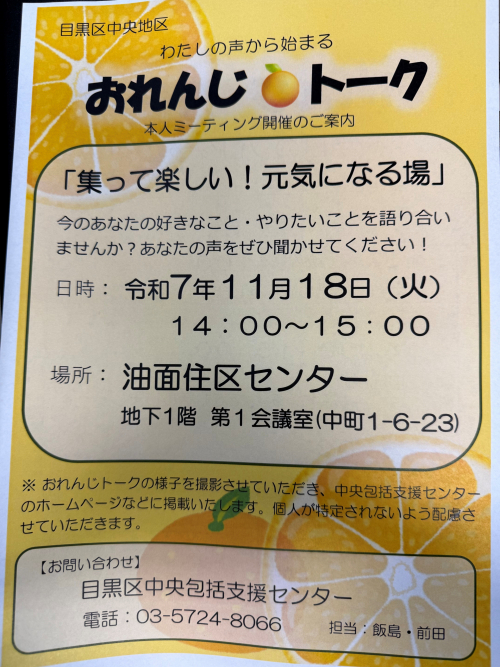 2025.12.08 【目黒区中央包括】★スペインTV局より取材★見守りボランティアについて 活動報告 2025.12.08 【目黒中央包括】令和7年度東京都病院以外の看護師等認知症対応力向上研修 第2回に参加しました。 活動報告 2025.12.05 【目黒中央包括】おばんざいについて 活動報告 2025.12.05 【目黒中央包括】コミュニティカフェにてボランティア見学の方々とお話ししました。 活動報告 2025.12.01 【目黒中央包括】従来の健康保険証が使えなくなります。 お知らせ 2025.12.01 【目黒中央包括】上目黒いこいの家相談会 行います。 お知らせ 2025.11.25 コミュニティカフェに参加しました! 活動報告 2025.11.25 【目黒中央包括】上目黒いこいの家相談会開催しました。 活動報告 2025.11.21 【目黒中央包括】11/27 介護者の会「八重の会」が開催されます 活動報告 2025.11.21 【目黒中央包括】「オレンジトーク」開催しました 活動報告 2025.11.20 目黒区介護事業者連絡会全体会研修に参加しました! 活動報告 2025.11.15 コミュニティカフェさくらプラザでお話ししませんか? お知らせ 2025.11.15 防災行動マニュアルをご存じですか? お知らせ 2025.11.15 11月21日 ひきこもりながら心地よくすごせる「家」と「居場所」 お知らせ 2025.11.15 11月20日(木)成年後見制度のおはなし お知らせ 1 2 3 4 5 … 31