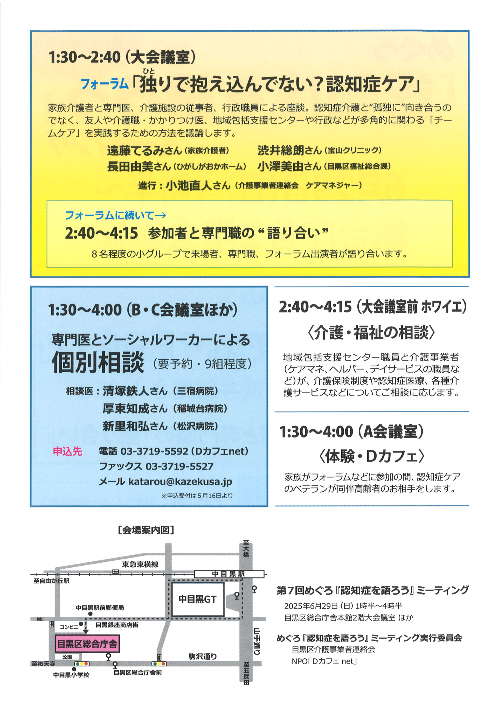 【目黒区中央包括】6月29日(日) めぐろ「認知症を語ろう」ミーティング 開催のお知らせ!