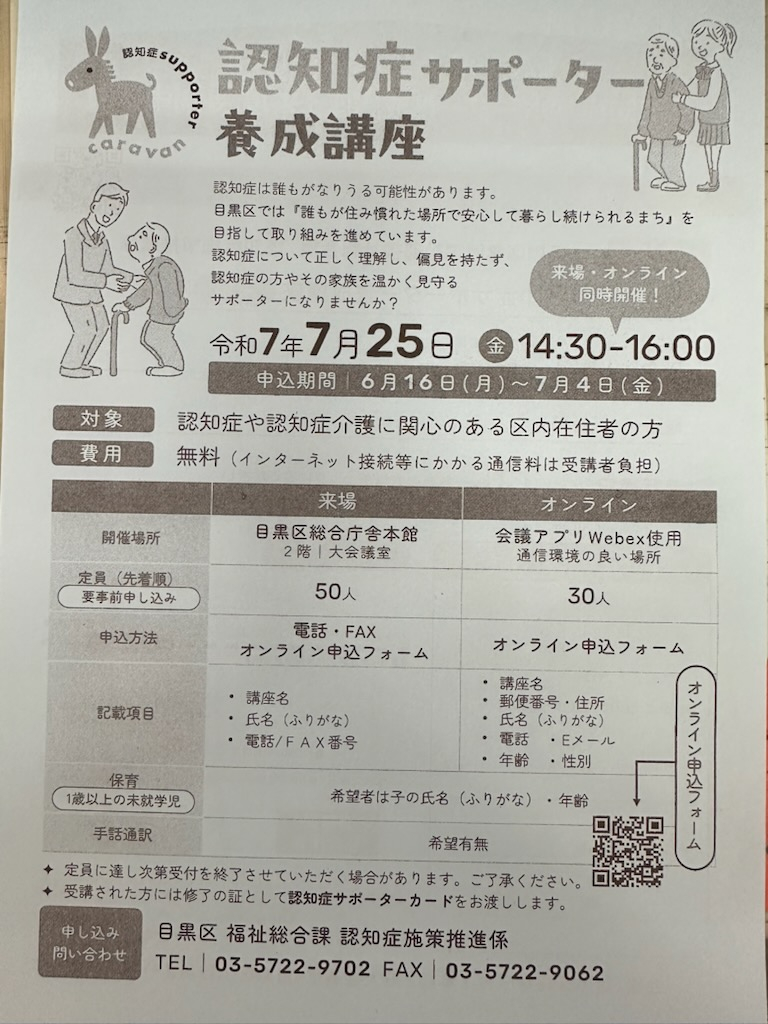 【目黒中央包括】認知症サポーター養成講座のご案内