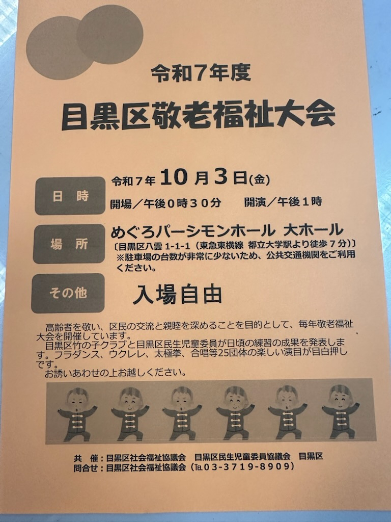 令和7年度 目黒区敬老福祉大会が開催されます! 入場は自由です!