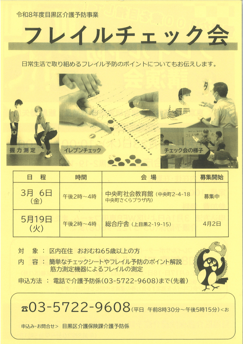 令和8年度目黒区介護予防事業フレイルチェック会のご案内