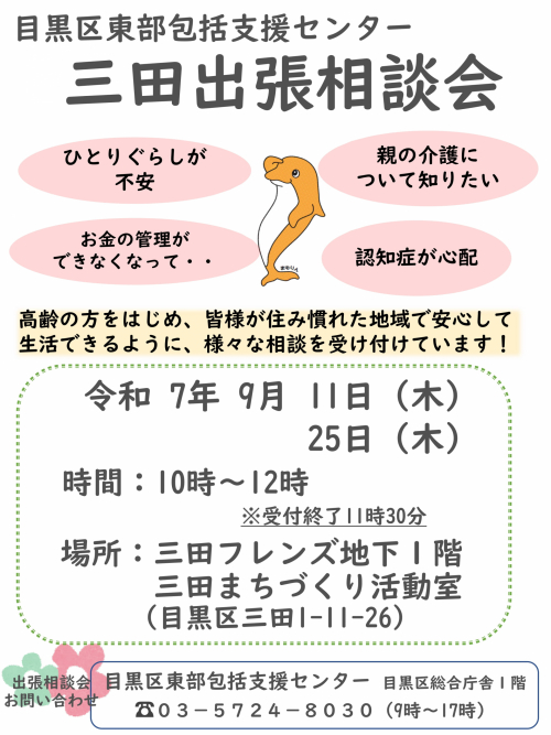 2025.10.01 【東部包括】しじゅうから開催します お知らせ 2025.09.30 【目黒区東部包括】しじゅうから開催しました。 活動報告 2025.09.30 【目黒区東部包括】給付管理のお知らせ 活動報告 2025.09.29 【目黒区東部包括】法人主催社会福祉士初任者研修会に参加しました。 活動報告 2025.09.26 【目黒東部包括】手ぬぐい体操なかめぐろに参加しました! 活動報告 2025.09.26 【目黒東部包括】デイサービスヨウコー中目黒の運営推進会議に出席しました 活動報告(IN) 2025.09.25 【東部包括】さん9倶楽部手ぬぐい体操に参加しました! 活動報告 2025.09.25 【目黒東部包括】三田出張相談会を開催いたしました 活動報告(IN) 2025.09.25 【目黒区東部包括】目黒区地域包括支援センターのポスターを展示しています 活動報告 2025.09.25 【目黒東部包括】東部地区認知症地域支援連絡会を開催しました。 活動報告 2025.09.22 【目黒東部包括】高齢者センター出張相談を開催しました! 活動報告 2025.09.19 【目黒東部包括】ふれあいの居場所を開催しました 活動報告 2025.09.17 【目黒区東部包括】あづまの会を開催しました! 活動報告 2025.09.16 【目黒区東部包括】三田出張相談会を開催します お知らせ 2025.09.13 【目黒区東部包括】東部ふれあい協議会🌸に参加しています! 活動報告 1 … 3 4 5 6 7 … 39