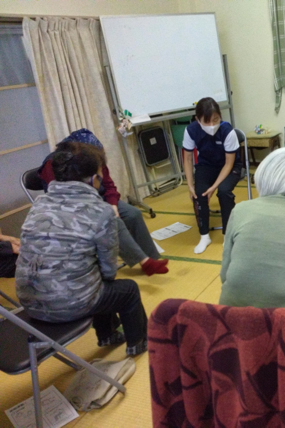 今回は、介護予防運動指導員の講師の方にお越しいただき、介護予防出前講座を行いました。