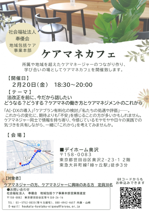 2026.02.13 NEW 【みどりの苑居宅】前野包括事業所交流会に出席しました。 お知らせ 2026.02.12 【みどりの苑居宅】雛祭りの準備 活動報告 2026.02.12 【みどりの苑居宅】手芸 活動報告 2026.02.09 【みどりの苑居宅】昨日の雪が残っています 活動報告 2026.02.08 【みどりの苑居宅】東京に積雪 活動報告 2026.02.06 【みどりの苑居宅】ケアマネカフェのお知らせ お知らせ 2026.02.05 【みどりの苑居宅】法人事例検討会に参加しました 活動報告 2026.02.05 【みどりの苑居宅】ひがしカフェに行ってきました 法人情報 2026.02.03 【みどりの苑居宅】主任介護専門員研修5日目 活動報告 2026.02.03 【みどりの苑居宅】節分 活動報告 2026.01.29 【みどりの苑居宅】ジャポニカ学習帳 お知らせ 2026.01.29 【みどりの苑居宅】前野地区小地域ケア会議に参加しました お知らせ 2026.01.29 【みどりの苑居宅】生活保護制度と障がいサービスの基礎 研修聴講してきました。 活動報告 2026.01.26 【みどりの苑居宅】認知症サポーター養成講座 活動報告 2026.01.26 【みどりの苑居宅】衆議院選挙 活動報告 1 2 3 … 30