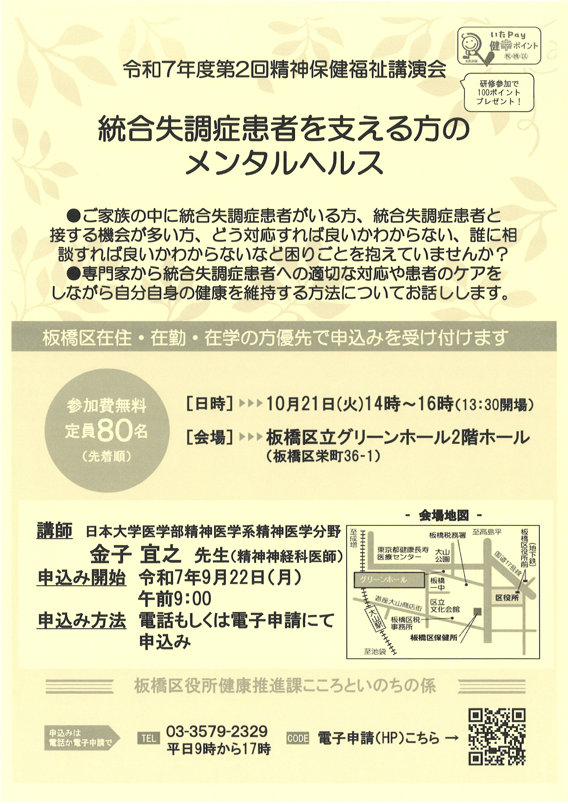 統合失調症患者を支える方のメンタルヘルス講演会が開催されます。