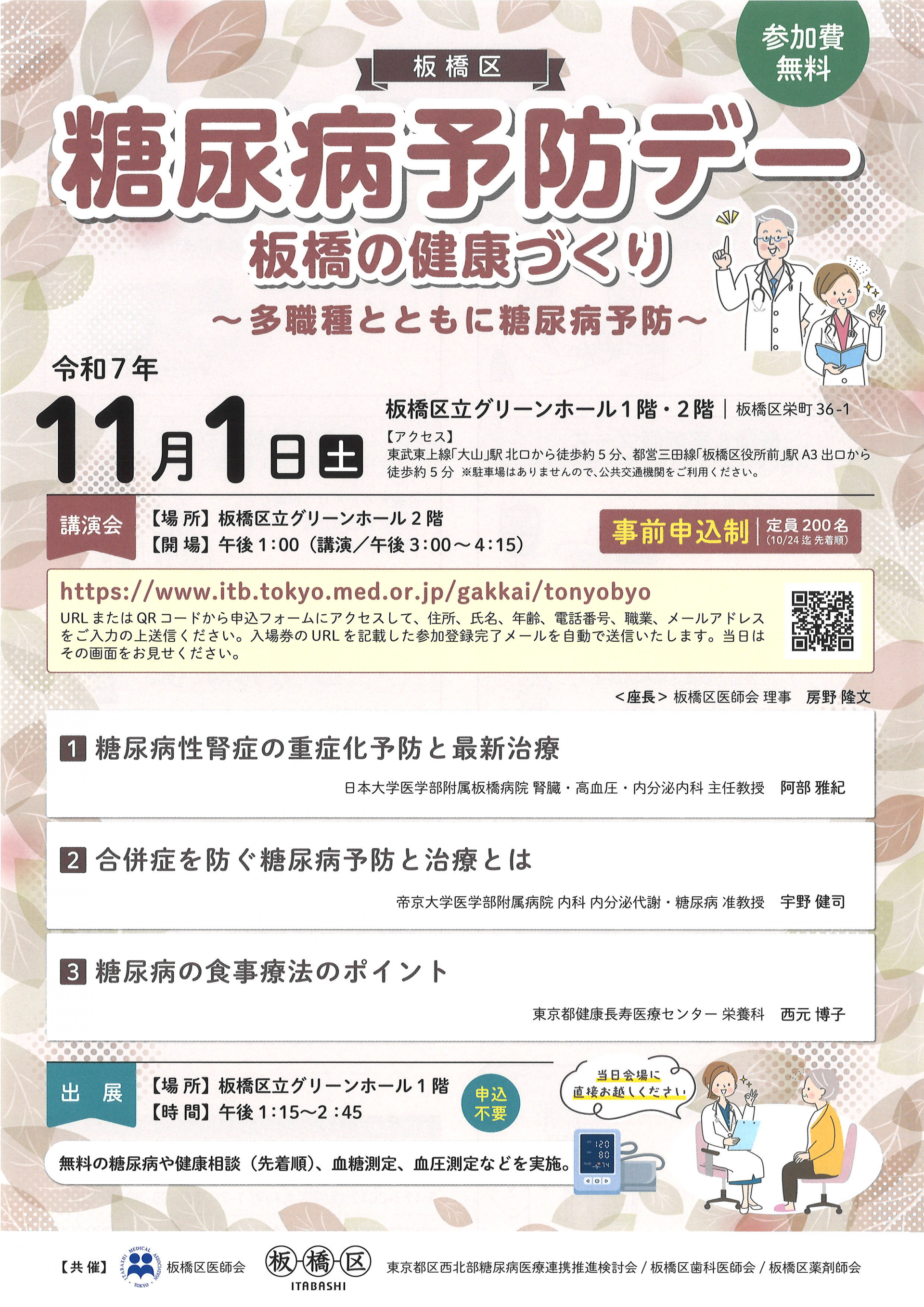 様々な糖尿病に関する講演会や申し込み不要にて無料の糖尿病や