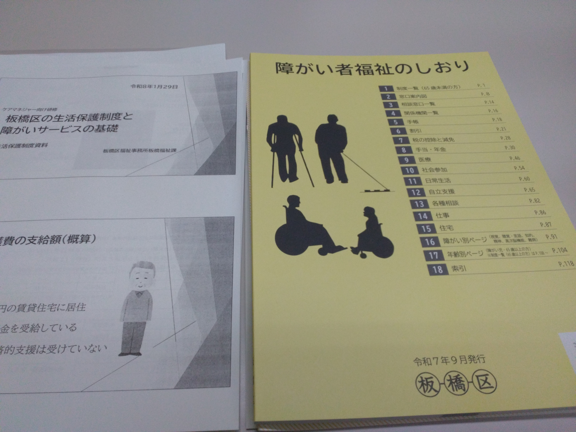 2026.01.29 活動報告 【みどりの苑居宅】生活保護制度と障がいサービスの基礎 研修聴講してきました。 Tweet シェアする 本日、おとしより保健福祉センターにて「生活保護制度と障がいサービスの基礎」の研修を聴講してきました。常に生活保護制度とは直接関わる事が多いので改めて資料や話を伺うとたいへん為になりました。対して障がいサービスについてはあまり関わる機会が少ない為理解するには時間がかかりそうです。OM 前の記事 2026.01.29 活動報告 【みどりの苑居宅】前野地区小地域ケア会議に参加しました 次の記事 2026.01.26 活動報告 【みどりの苑居宅】認知症サポーター養成講座 一覧へ戻る