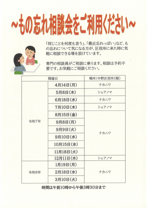予約が必要です。ご不安やお困りごとがある場合は、お気軽に地域包括支援センターにもご相談ください。