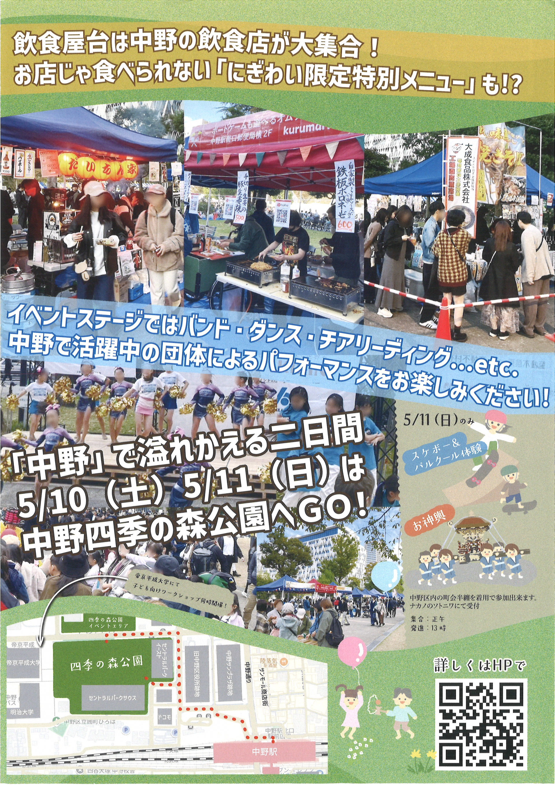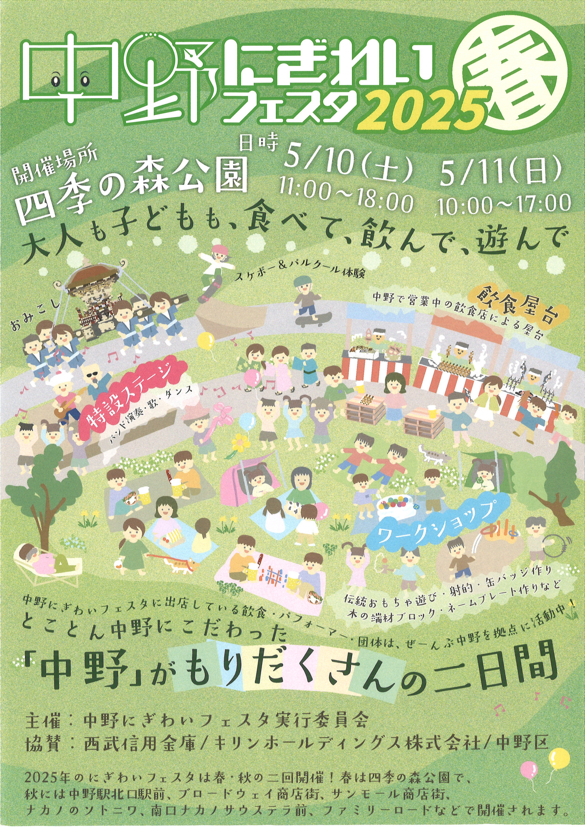 5/10(土)、11(日)四季の森公園にて「中野にぎわいフェスタ2025」が開催されます。