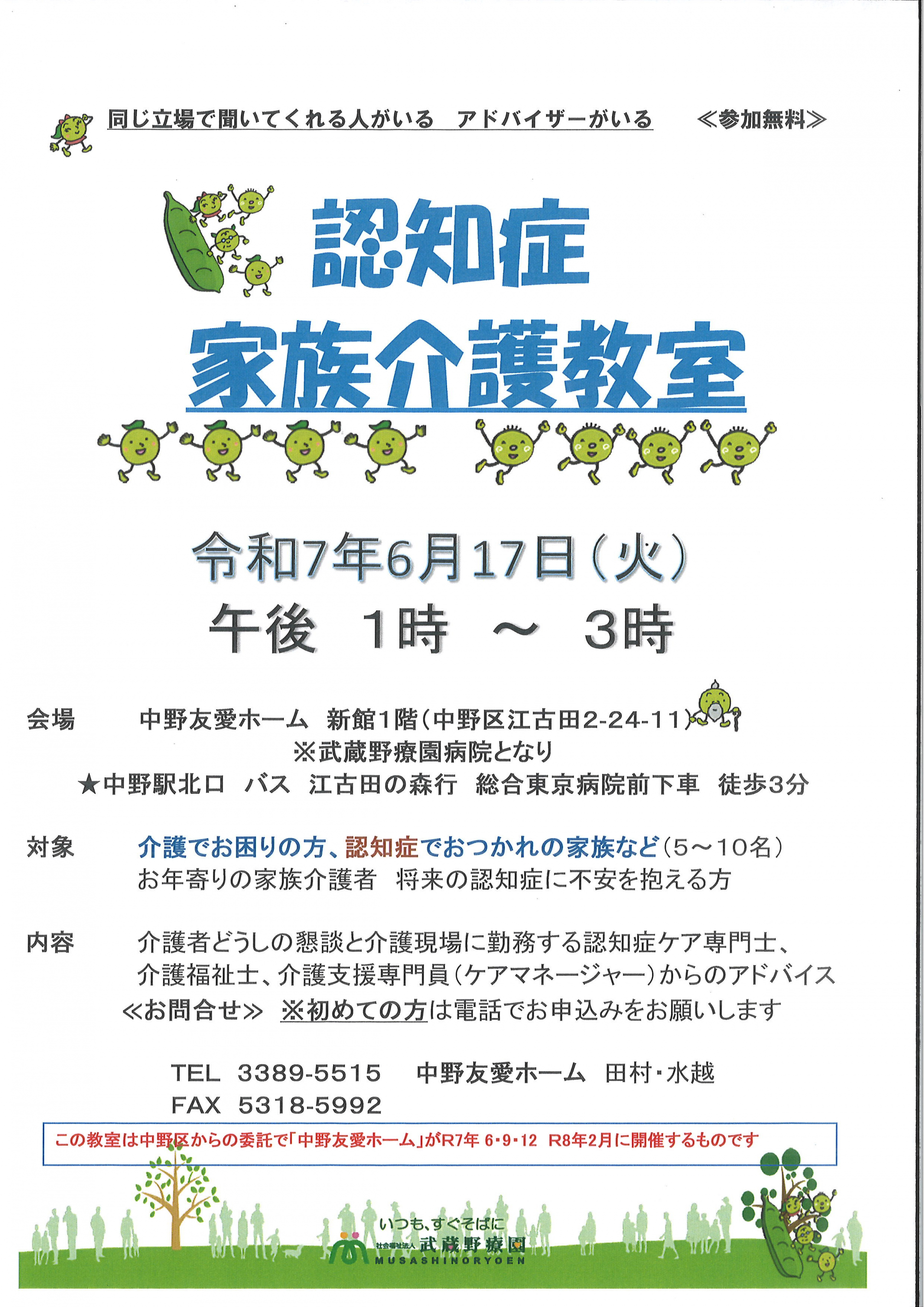 【南中野包括】6/17認知症家族介護教室~中野友愛ホーム~