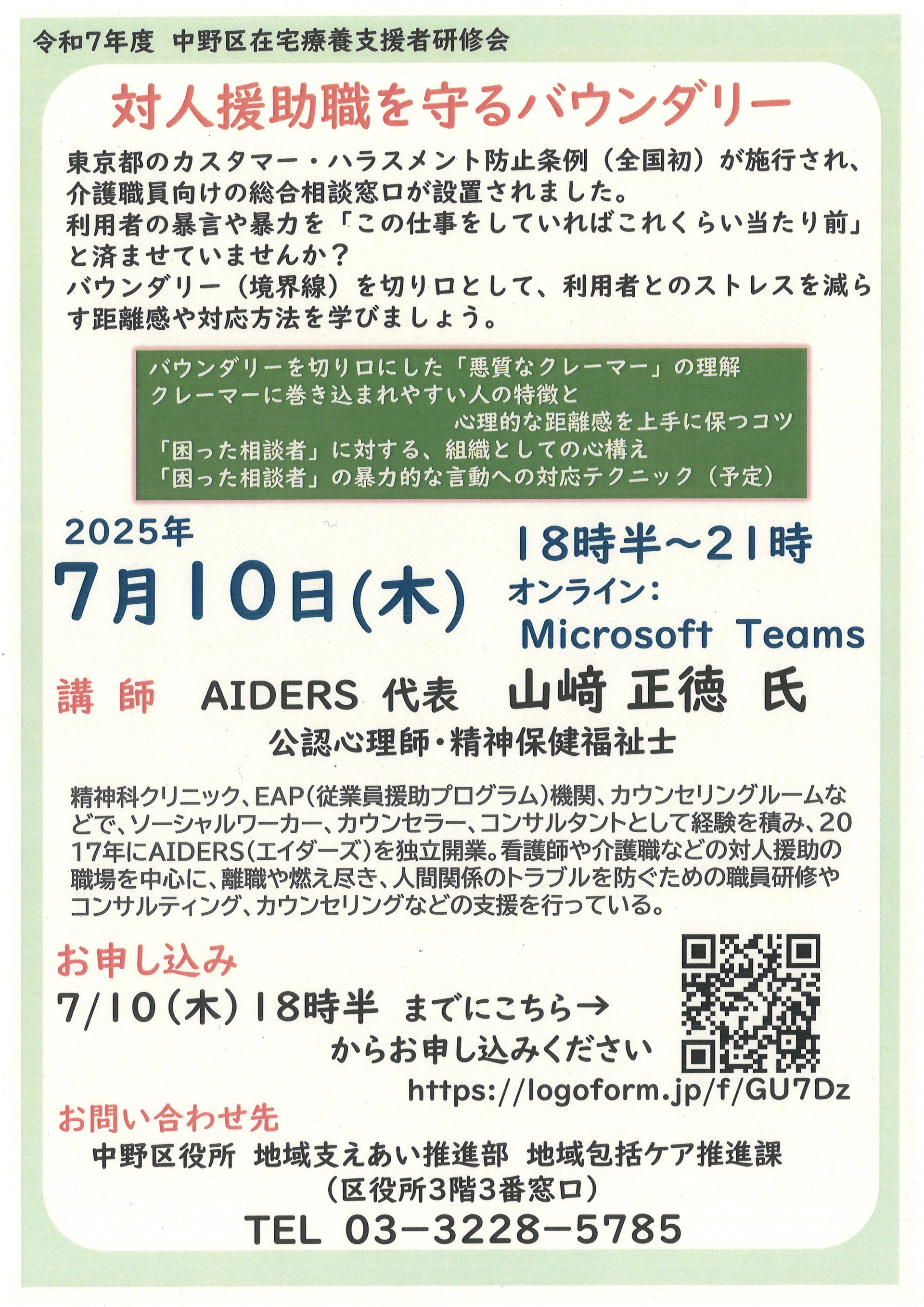 中野区「在宅療養支援者研修」のお知らせです。