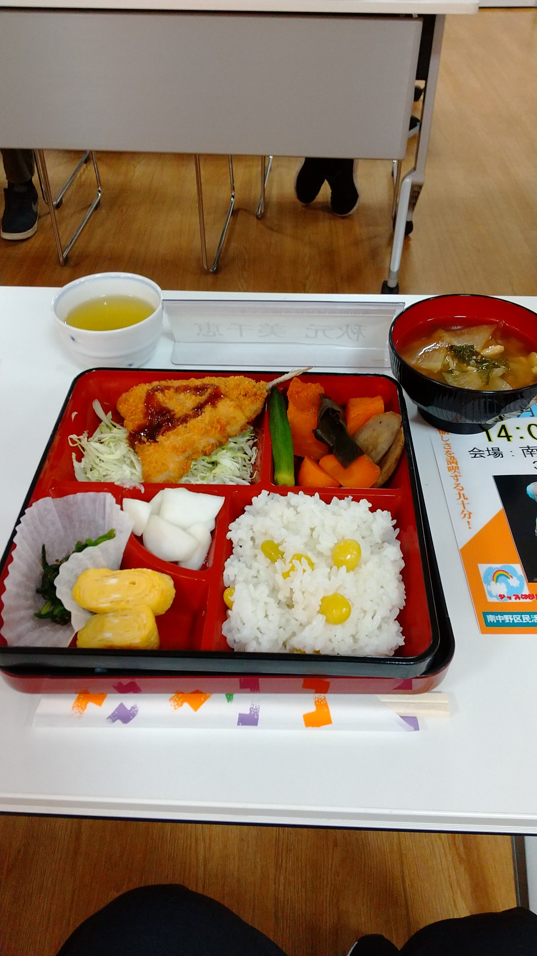 南中野ボランティアコーナーの会長様の考えられたメニューを、会の皆さまで朝から調理をされてお弁当として提供され召し上がられるという会で、1か月に一度開催されます。