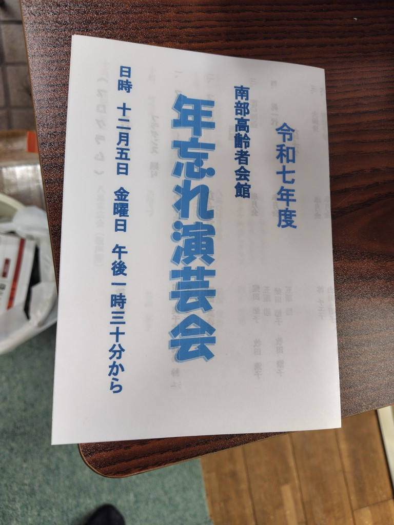 「年忘れ 忘年会」が南部高齢者会館で開催されました。