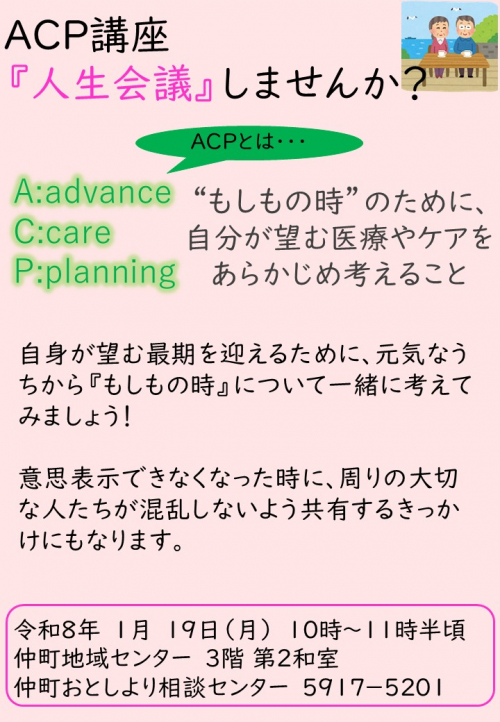 2026.01.29 NEW 【仲町包括】1月も体操教室を開催しました! 活動報告 2026.01.23 【仲町包括】つくしんぼ茶房 活動報告 2026.01.22 【仲町包括】ACP講座を開催しました 活動報告 2026.01.11 【仲町包括】防火診断 お知らせ 2026.01.08 【仲町包括】110番の日 イベントに参加してきました。 活動報告 2026.01.07 【仲町包括】令和7年12月給付完了のお知らせ。 活動報告 2026.01.05 板橋区 賀詞交歓会【仲町包括】 活動報告 2026.01.04 【仲町包括】ローリングストック お知らせ 2026.01.03 【仲町包括】ボランティアの存在 お知らせ 2026.01.02 【仲町包括】健康寿命 お知らせ 2026.01.01 【仲町包括】謹賀新年 お知らせ 2025.12.24 【仲町包括】ACP講座を開催します! 活動報告 2025.12.23 【仲町包括】 活動報告(IN) 2025.12.21 【仲町包括】令和7年度小地域ケア会議を開催しました。 活動報告(IN) 2025.12.20 【仲町包括】オレンジカフェ「ひまわり」に行ってきました。 活動報告 1 2 3 … 25