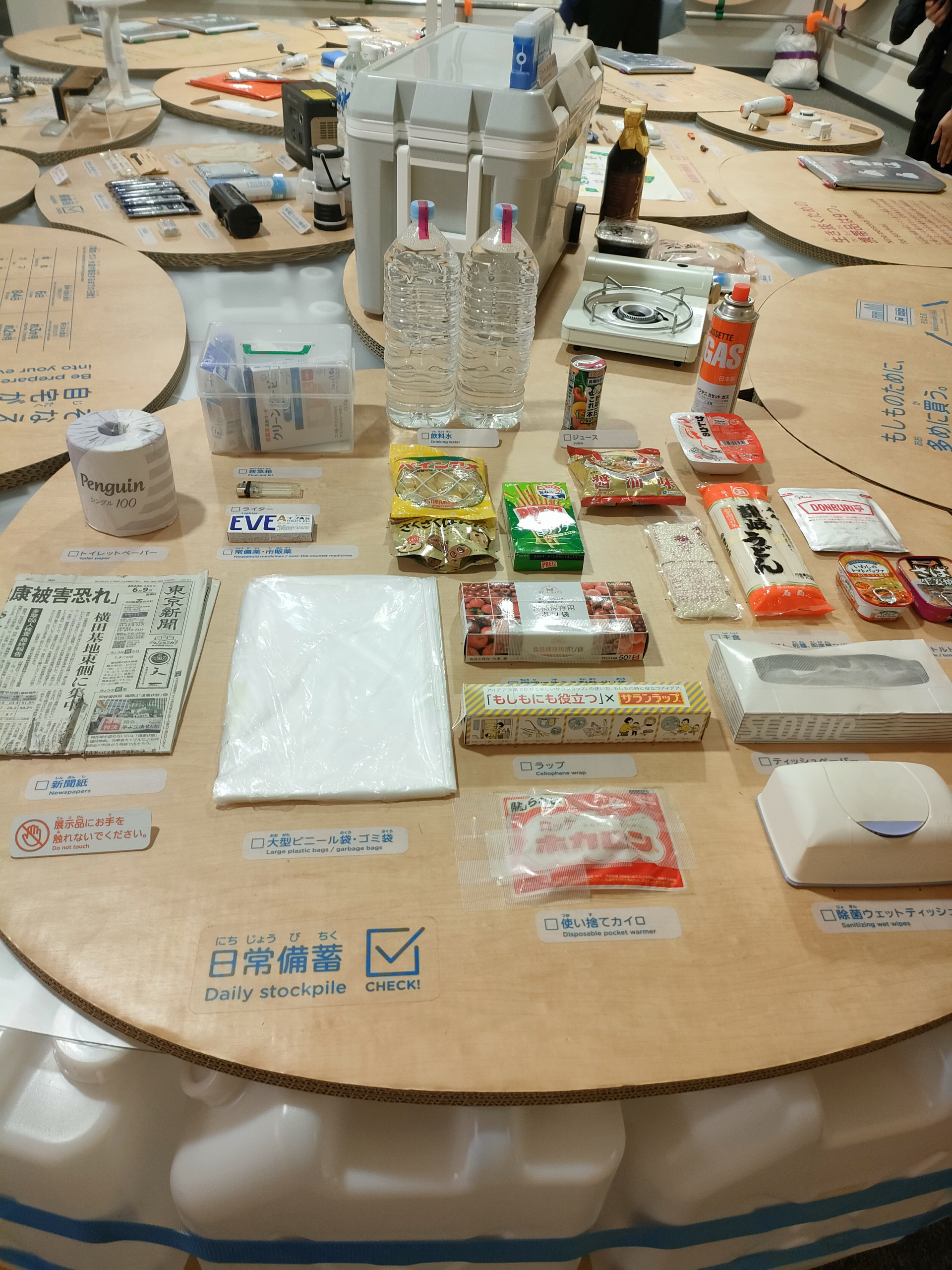 被災地や避難所の様子を再現した実物大のジオラマ展示もあり、タブレットに表示されるクイズに回答しながら学んでいくスタイルで、子供から大人まで災害発生前後の行動について深く考える機会となりました。