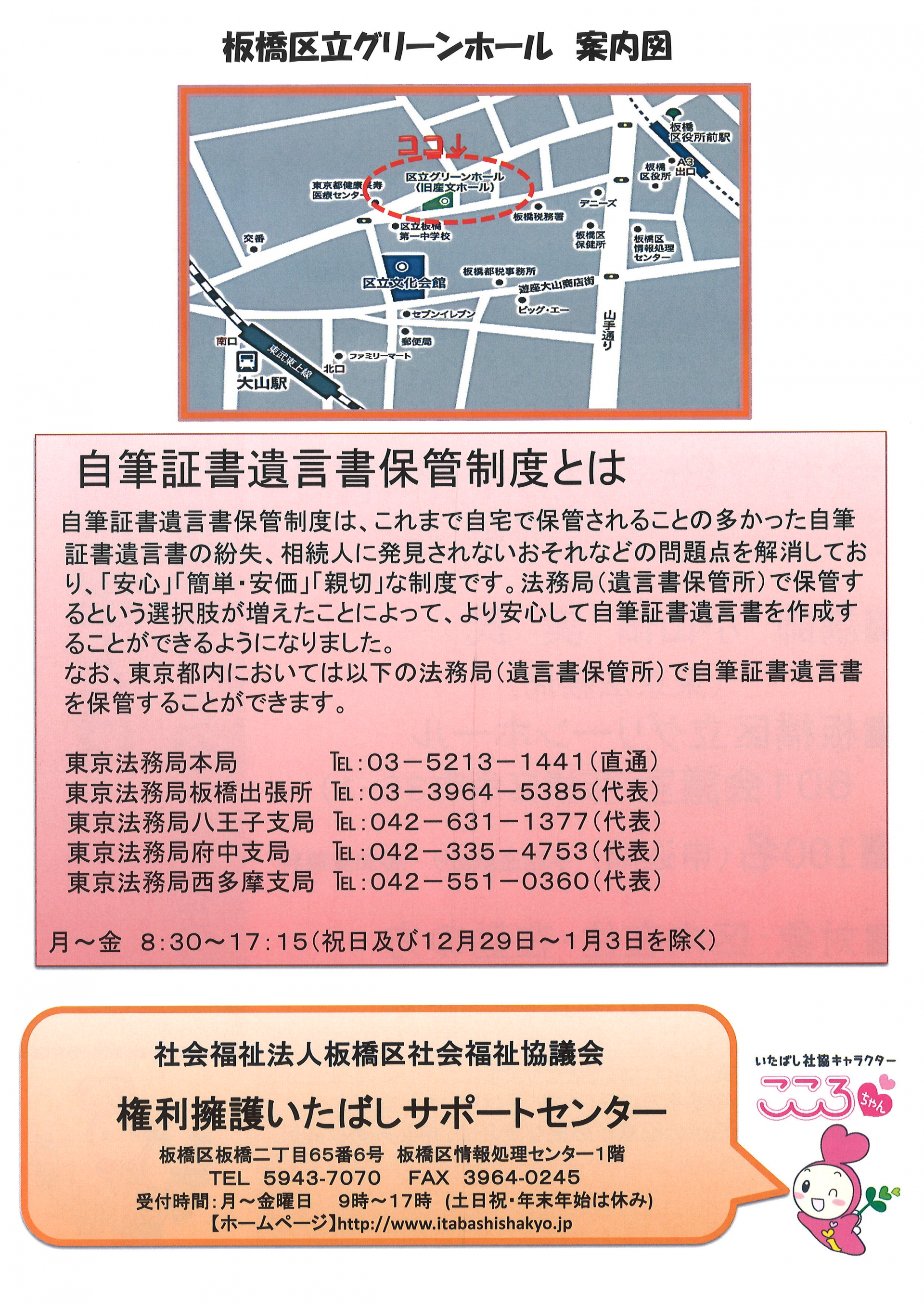2025.06.15 お知らせ 【仲町包括】遺言保管について Tweet シェアする 遺言について考える機会はいかがでしょうか 前の記事 2025.06.15 お知らせ 【仲町包括】仕事探し 次の記事 2025.06.11 お知らせ 【仲町包括】ハッピー仲町 一覧へ戻る