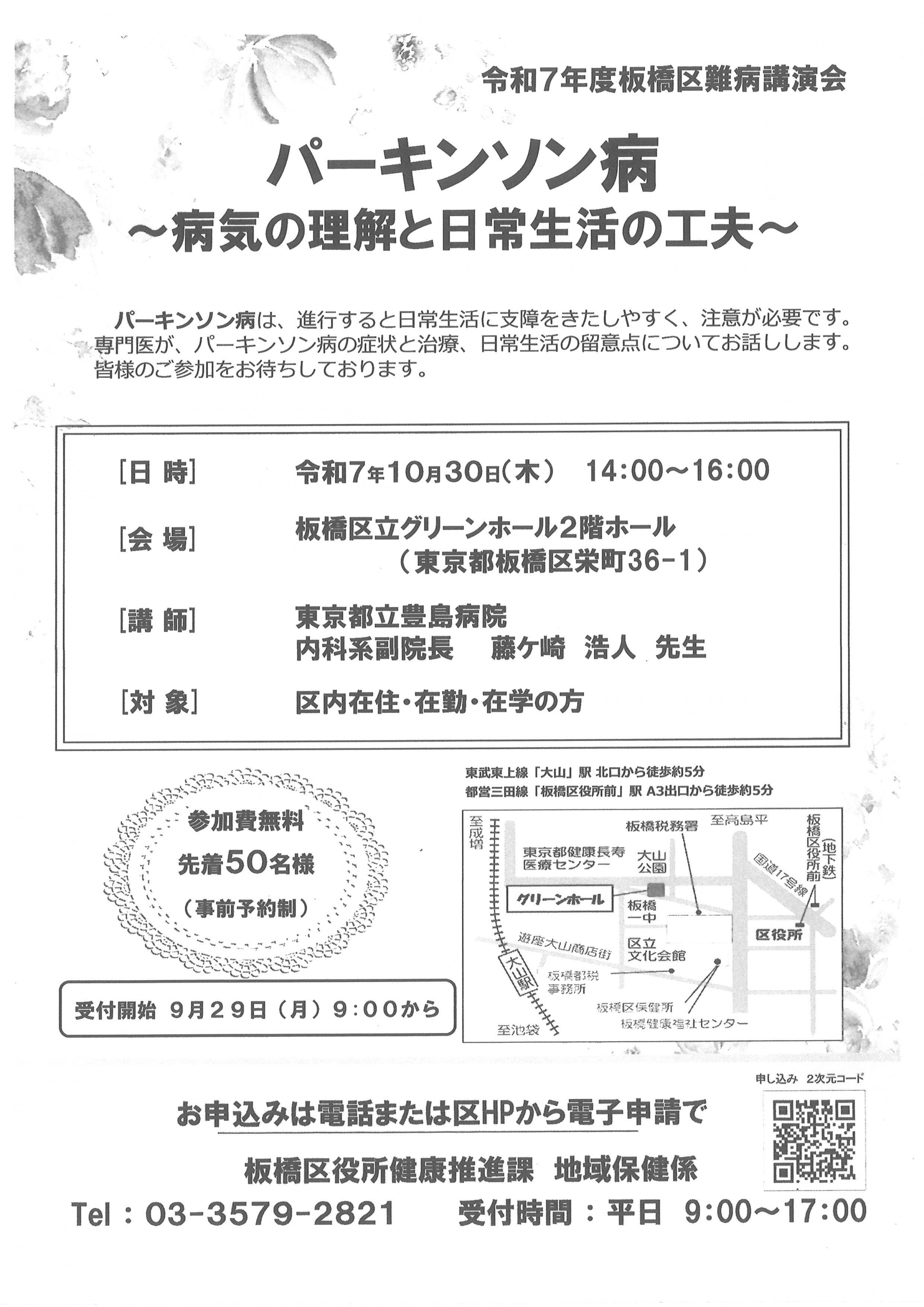 2025.10.26 お知らせ 【仲町包括】パーキンソン病について Tweet シェアする 難病と言われるパーキンソン病。ステージに応じて適切な治療が必要です。 前の記事 2025.10.27 お知らせ 【仲町包括】ミュージック・ケアの講座を開催しました! 次の記事 2025.10.25 お知らせ 【仲町包括】認知症の研修 一覧へ戻る